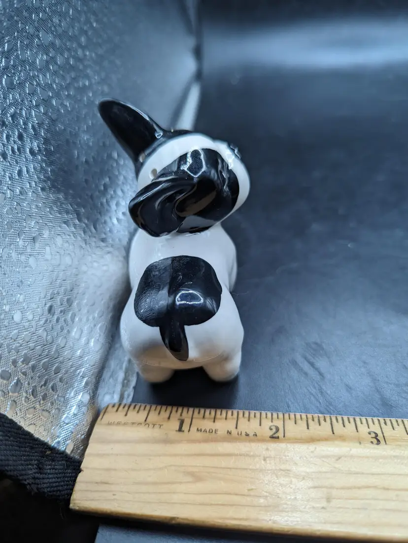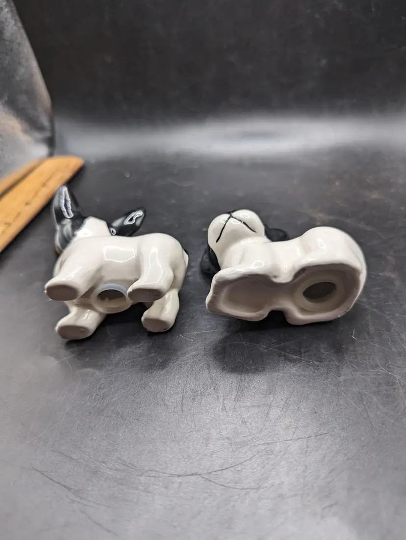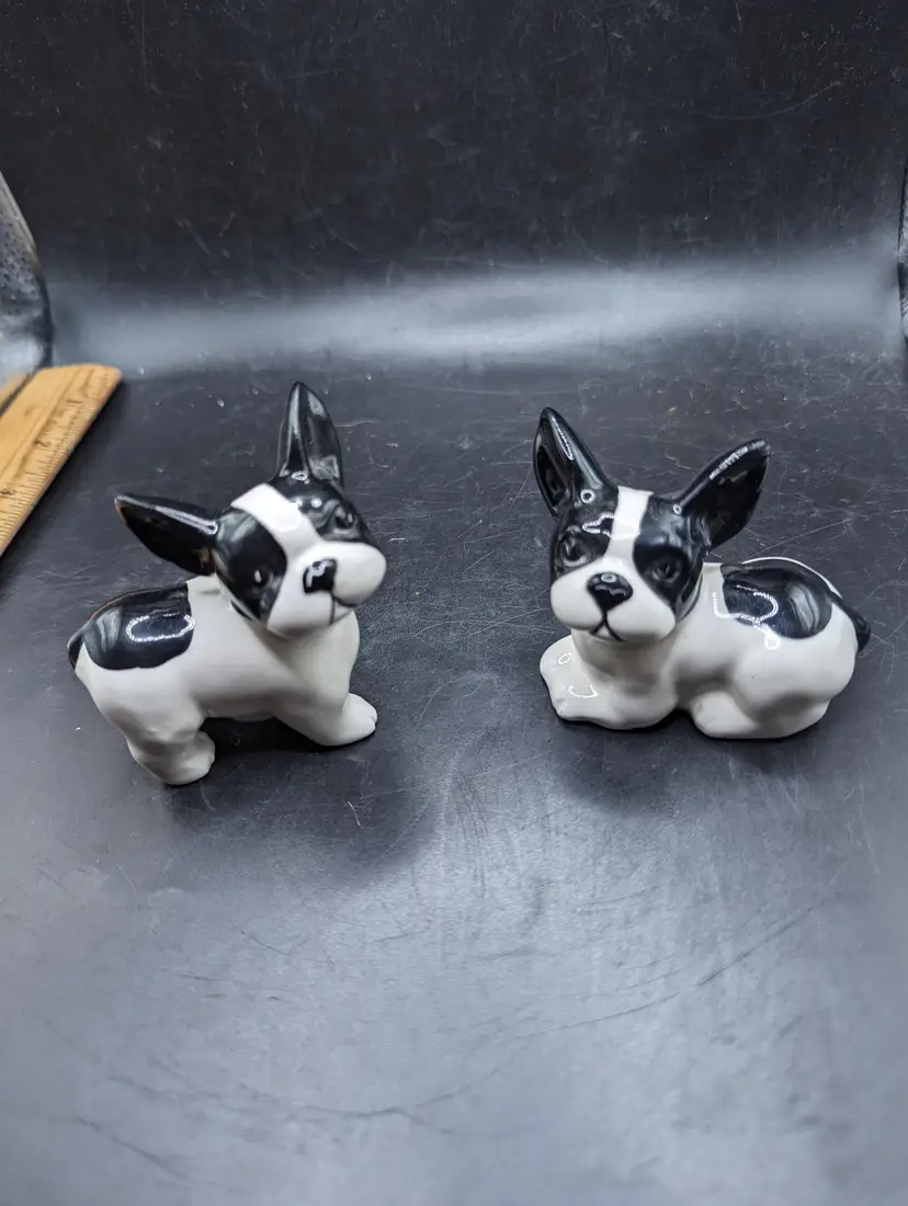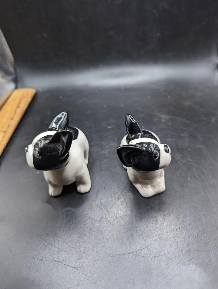 Adorable pair of vintage French Bulldog ceramic salt and pepper shakers, perfect for dog lovers and collectors. These charming pieces add a playful touch to any decor. Please see all photos for details and condition.