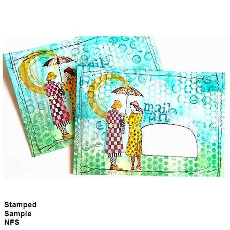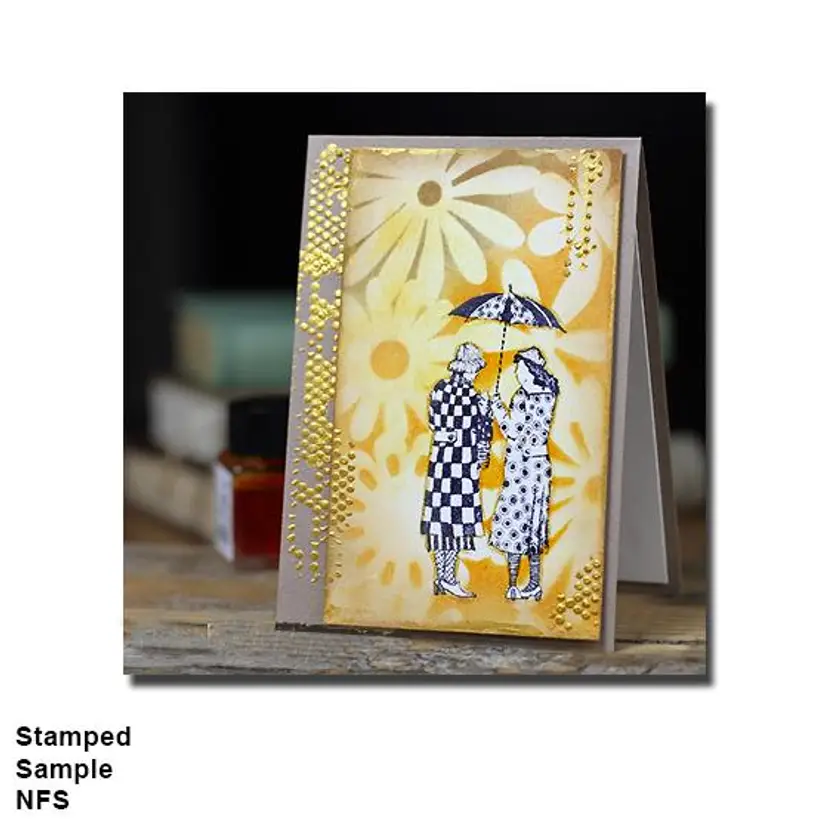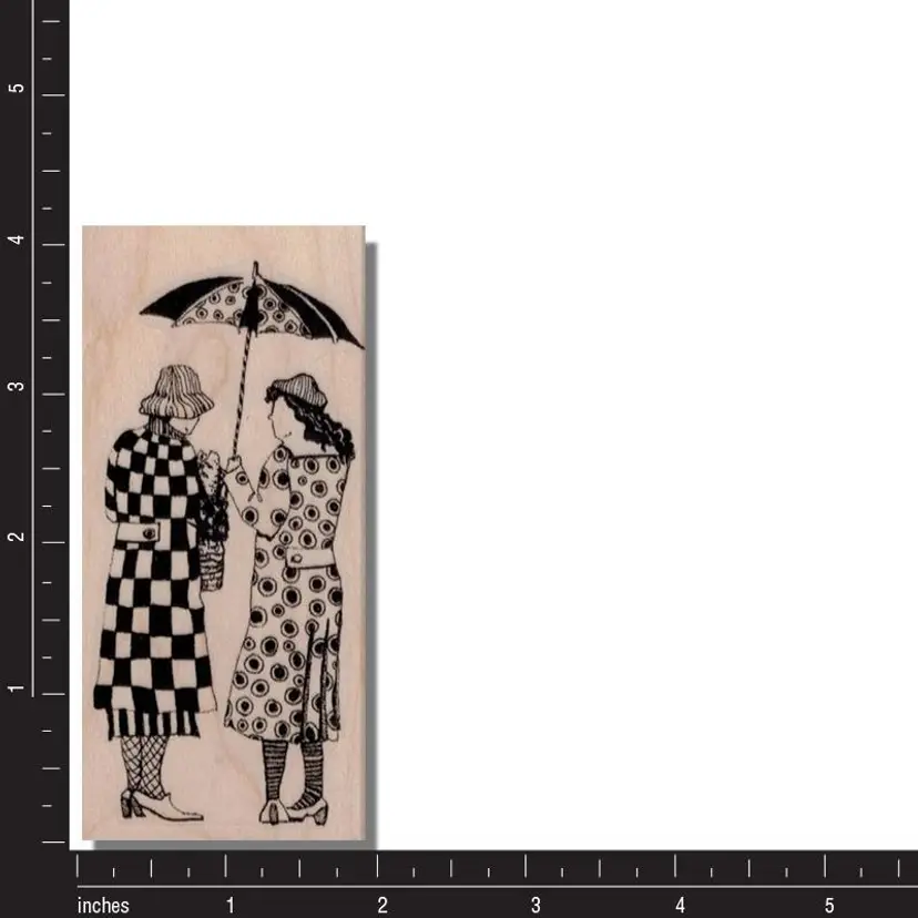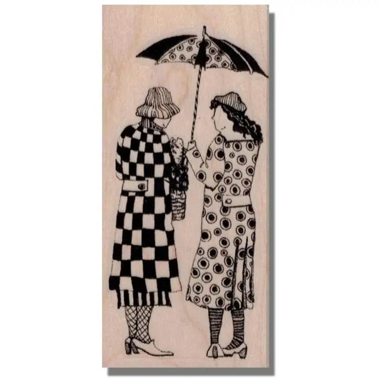 Vintage Friends Under Umbrella Art Rubber Stamp Size: 4 x 2 inches Wood Mounted • Perfect for adding an artistic touch to scrapbooking, card making, and mixed media projects. • First purchase on District? Use this code for $5 off a $10 min purchase. ALOHAG34