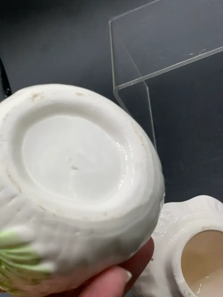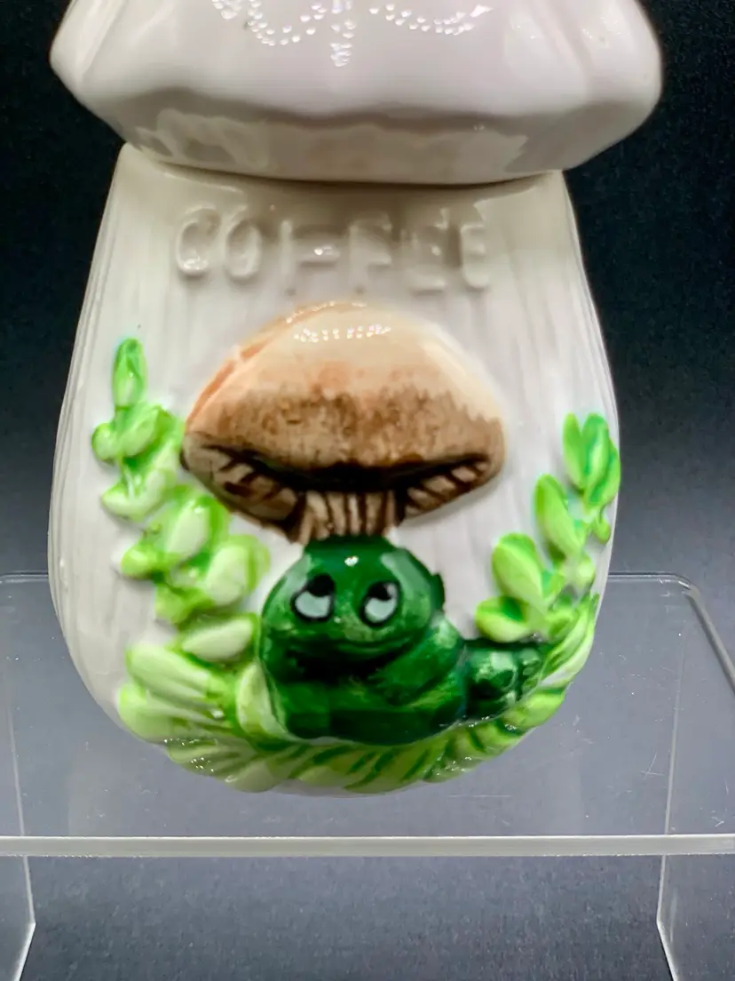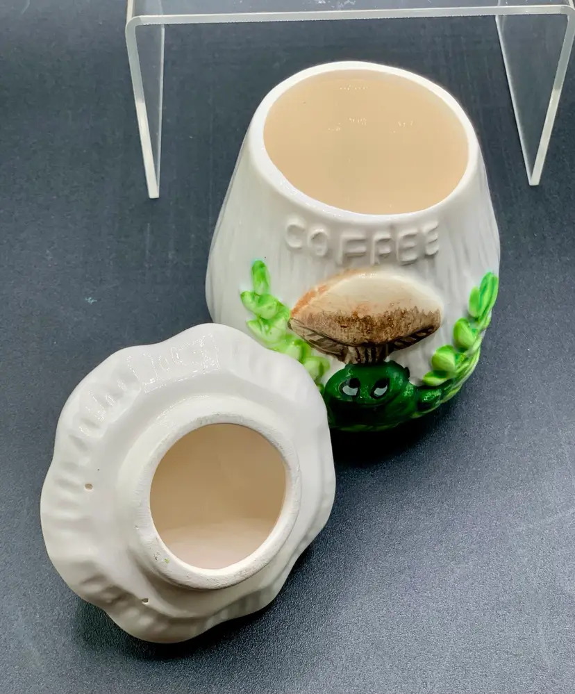 Small canister, probably for instant coffee. No chips or cracks. The lid is not airtight. Stands approximately 5.5” tall.