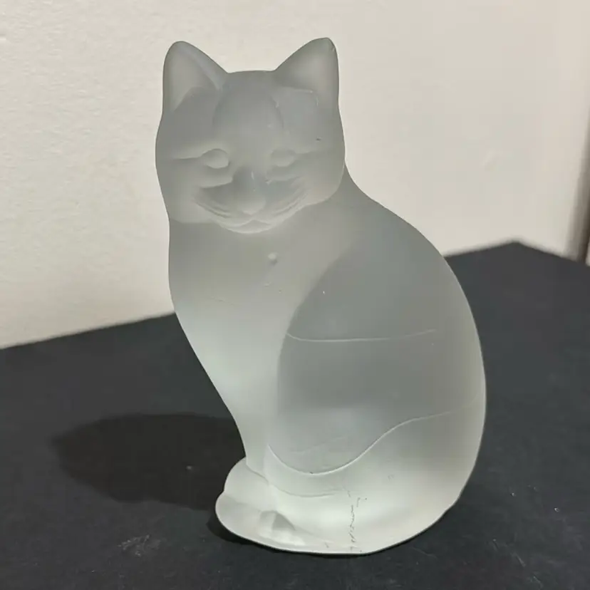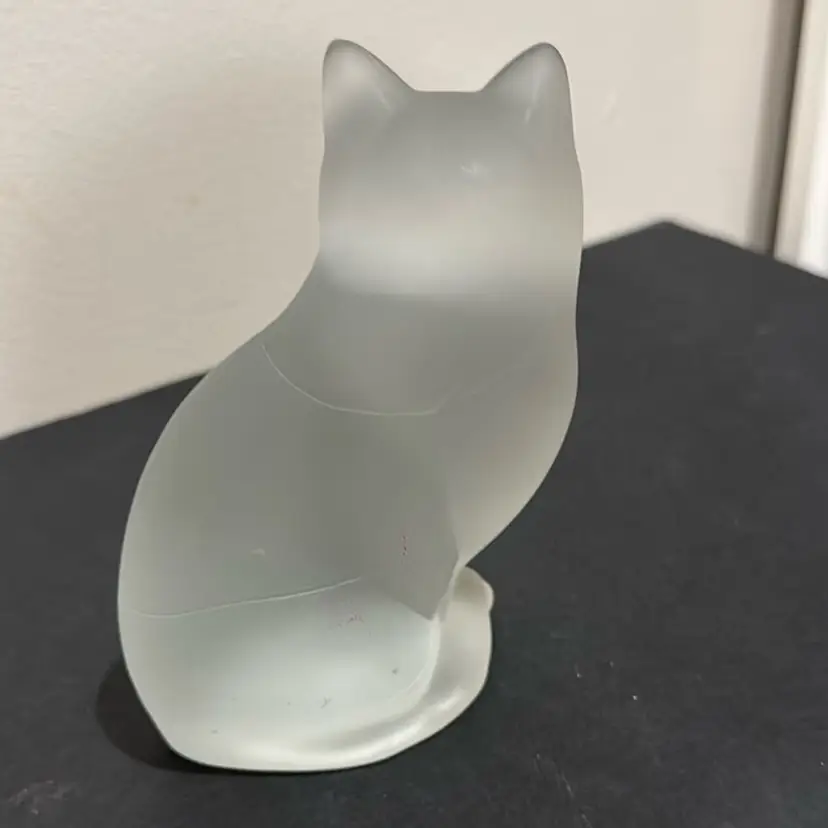 Super cute frosted glass cat paperweight! No chips or cracks. Small internal bubble. Measures 5 1/2 inches tall.