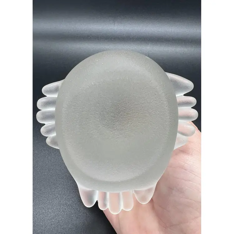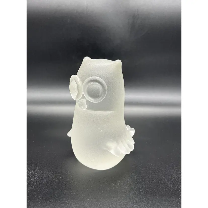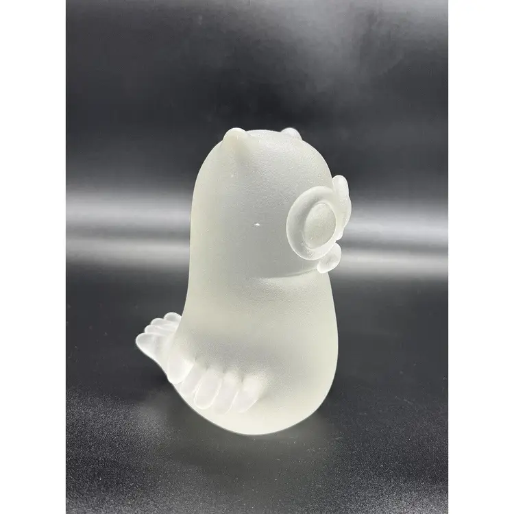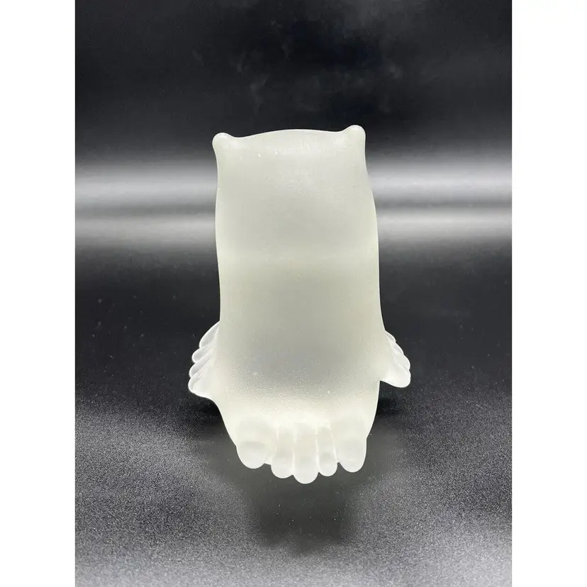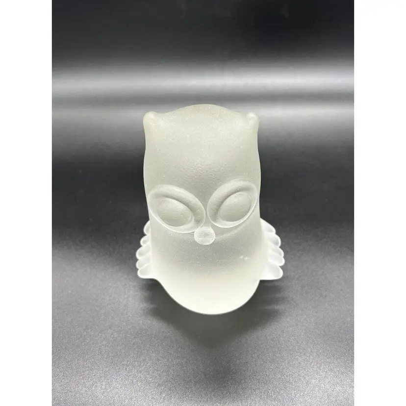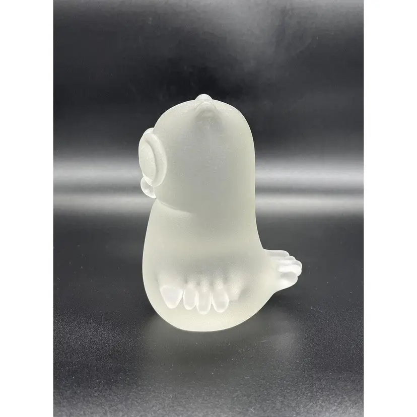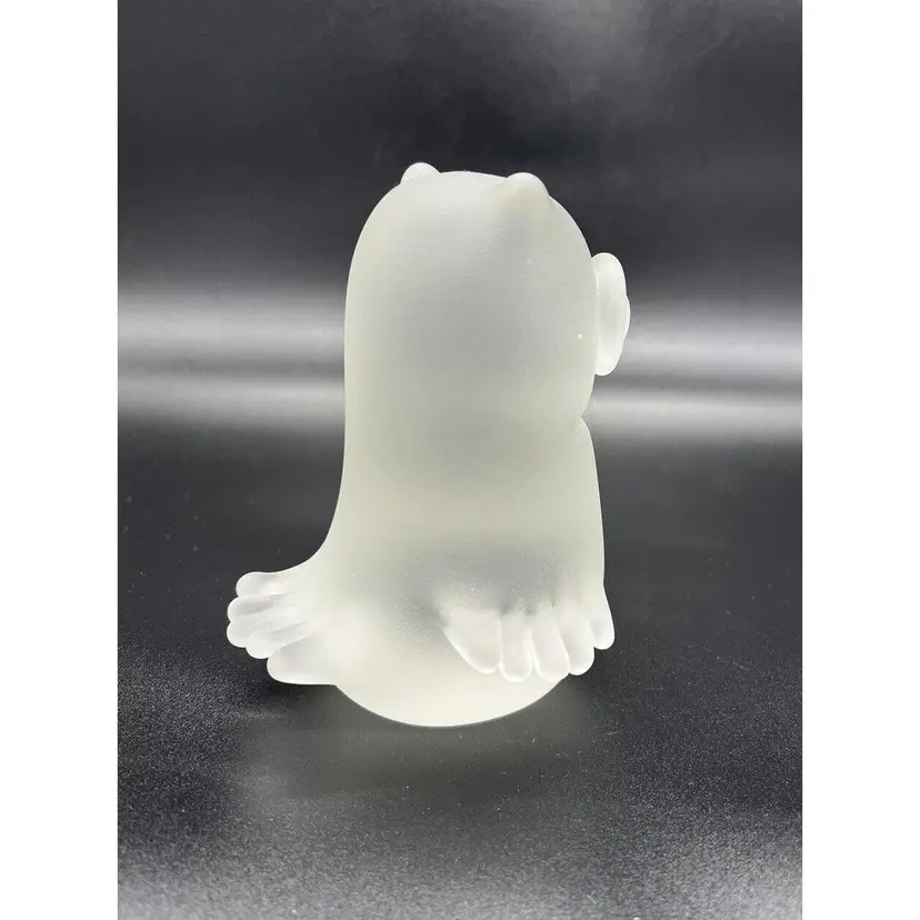 This piece is super cute and quite heavy. There is a small flaw above one eye as pictured, there are no chips or cracks though. It measures about 5 inches tall and 3 1/2 inches long.