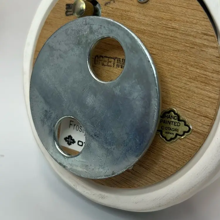 Vintage Otagiri Japan. Stickers on bottom. Turns and slowly plays Frosty the Snowman. Ni chips or cracks.
