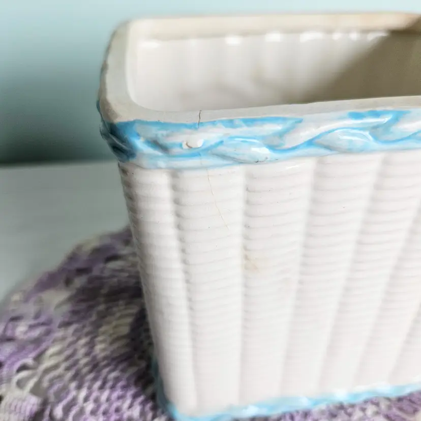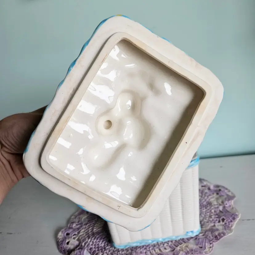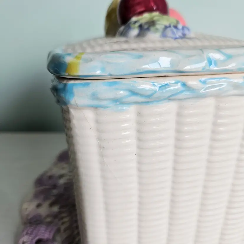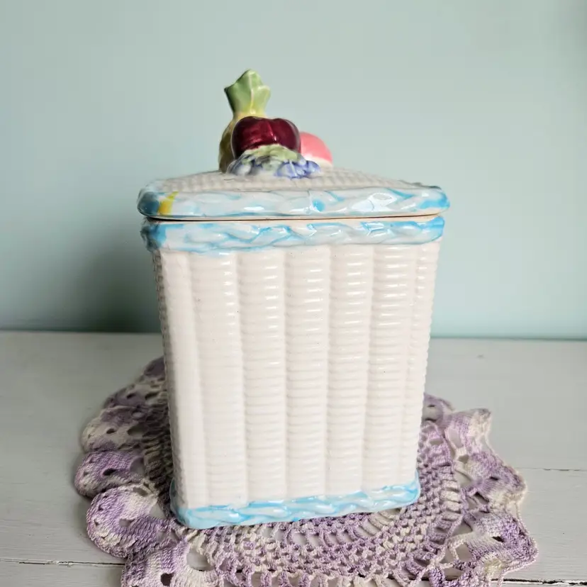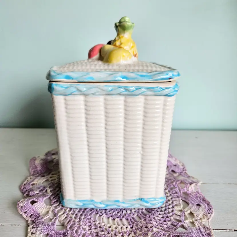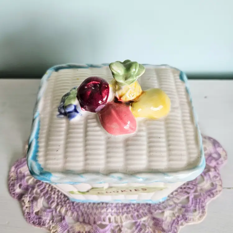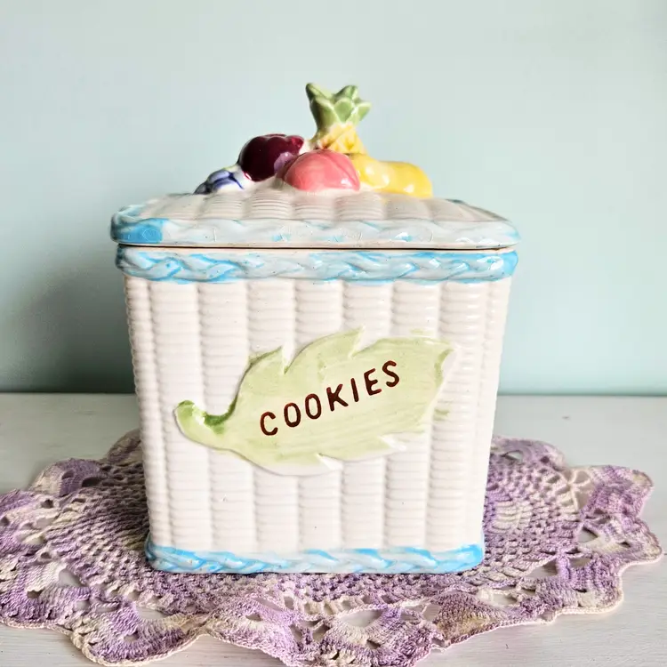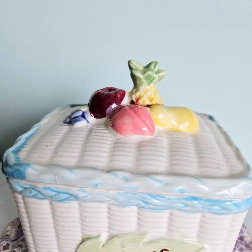 Vintage Fruit Basket Cookie Jar Blue & White