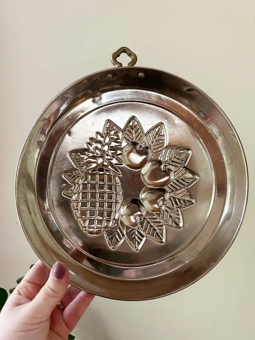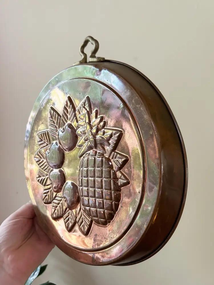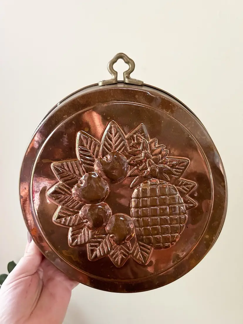 Vintage copper mold wall decor. Good condition. Measures 11 inches in diameter.