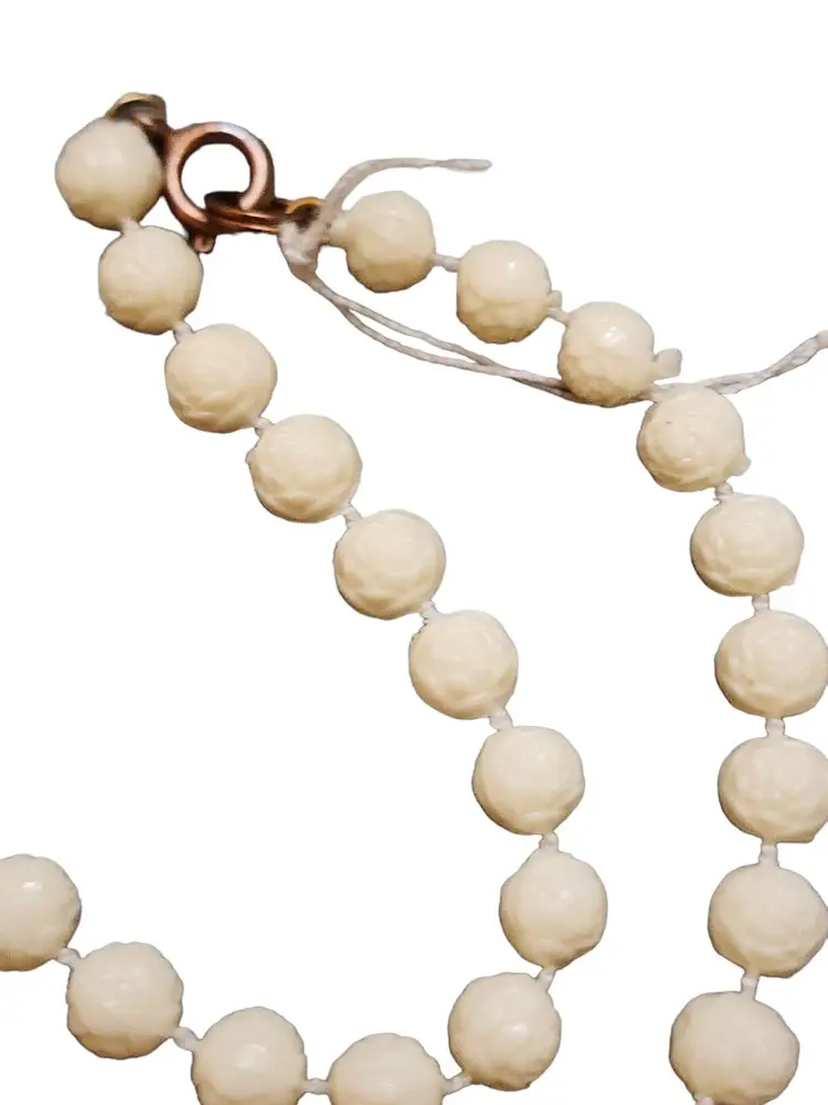 Size: approx. 24" Color: Off white with gold Condition: Very good vintage Era: Circa 1960's Signed: Unmarked