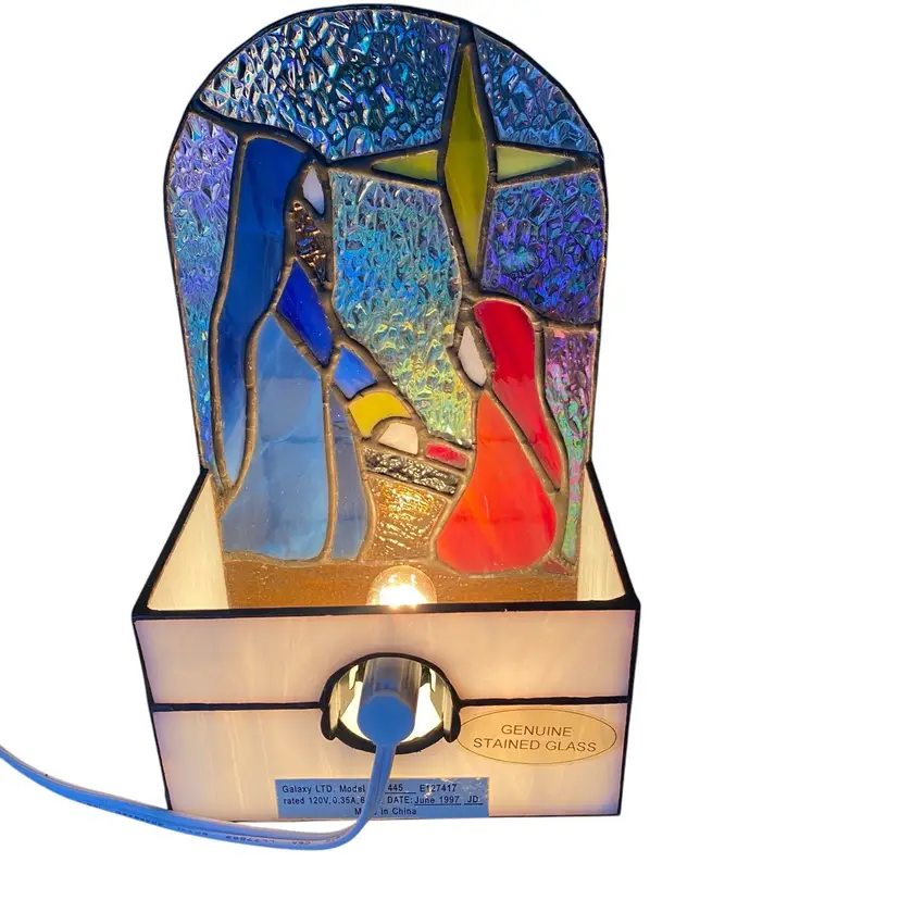 Vintage Galaxy LTD Stained Glass Nativity 1997 Christmas Light Lamp Model 37445 8.5in tall