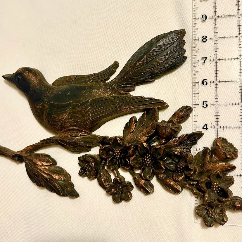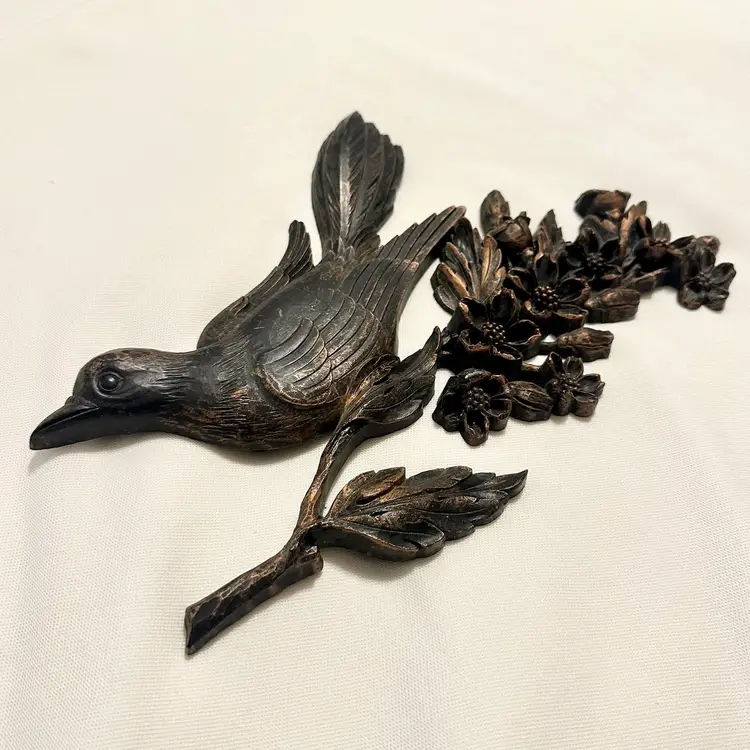 This listing is for one Vintage Dart Industries Coppercraft Embossed Bird On Dogwood Branch decorative wall hanging. Made of molded heavy duty plastic with a copper-tone brushed finish.