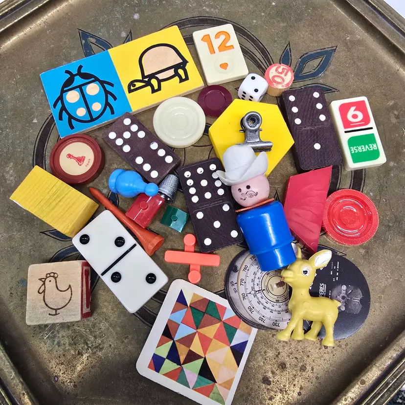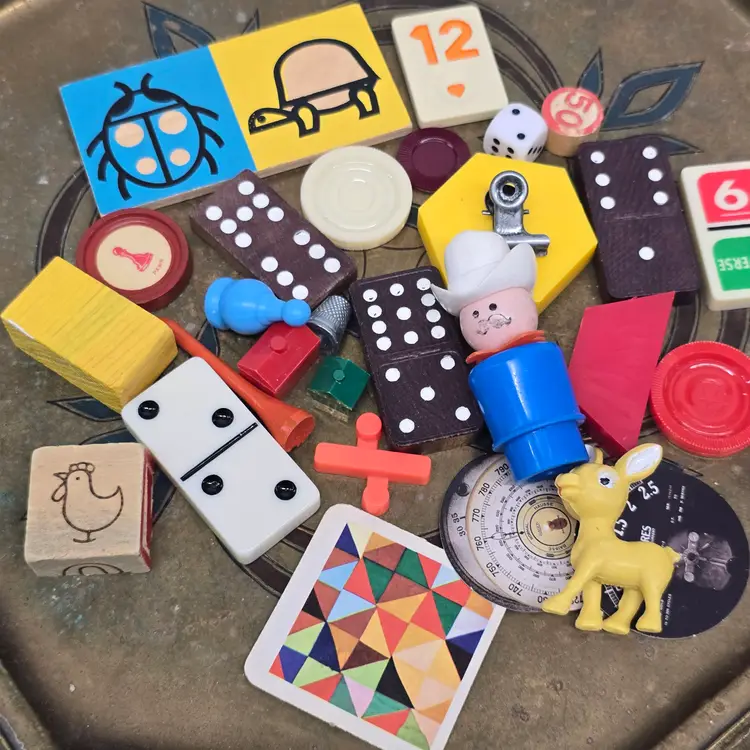 Vintage Game Pieces & Treasures Lot. Perfect for Junk Journaling or Assemblage Art Projects.