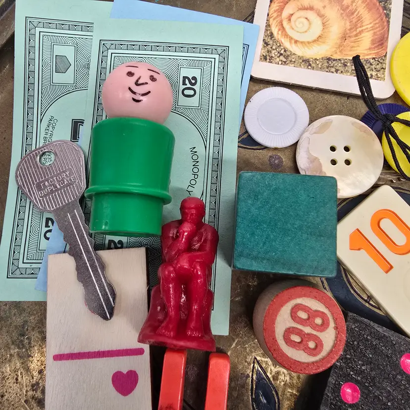 Vintage Game Pieces & Treasures Lot. Perfect for Junk Journaling or Assemblage Art projects.