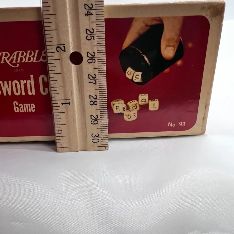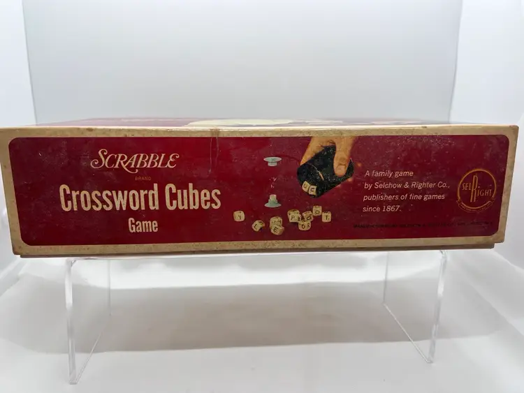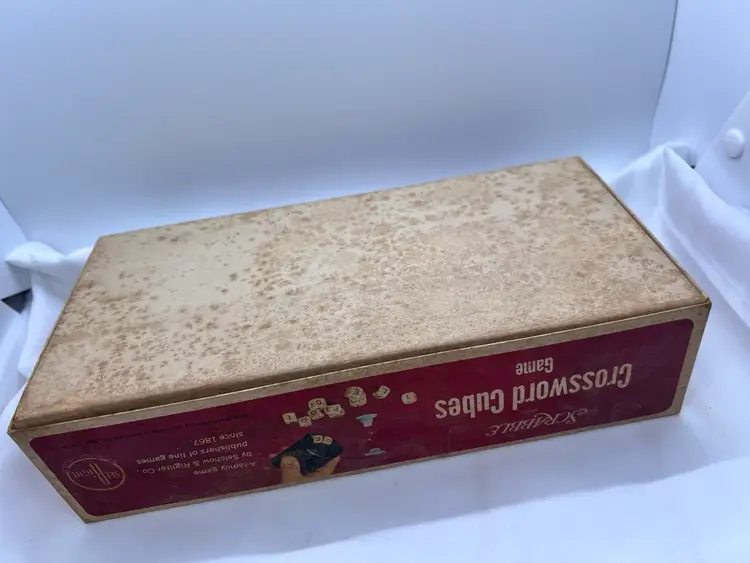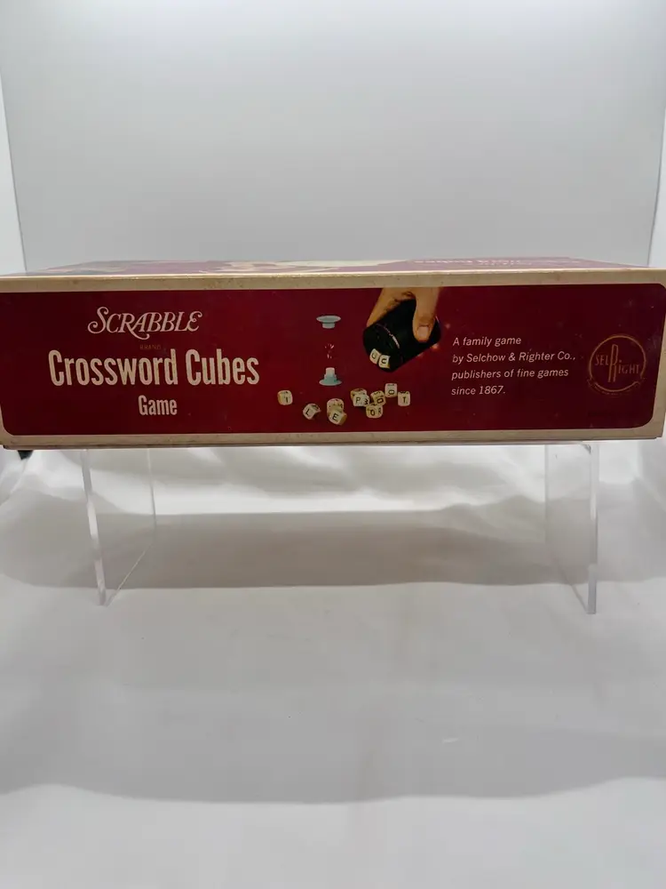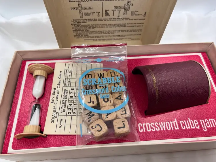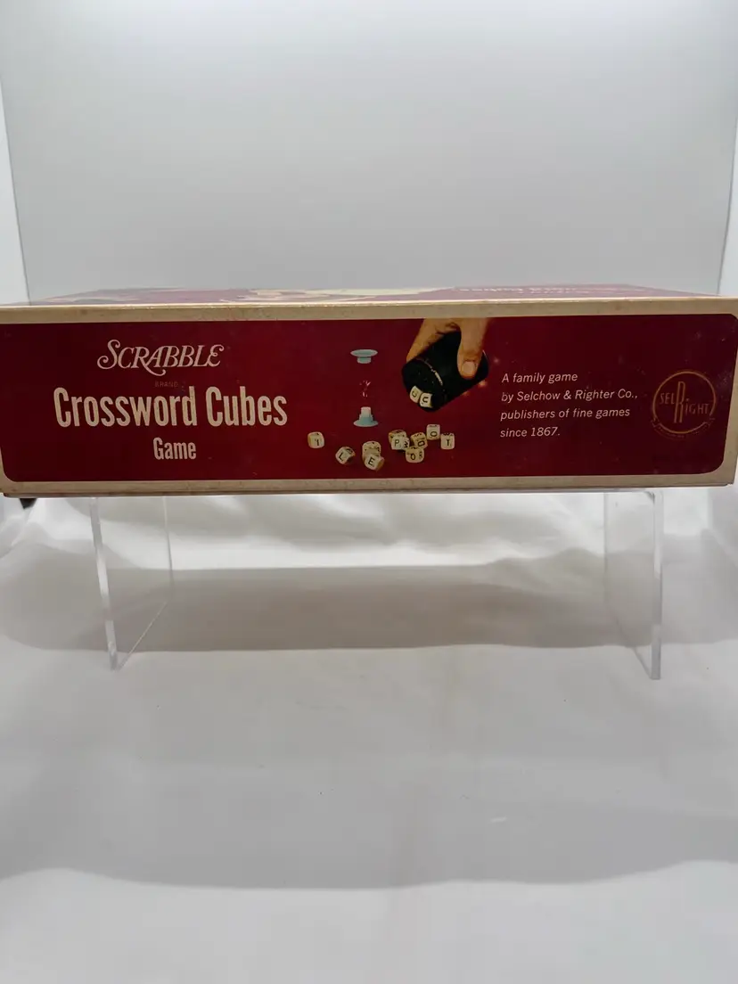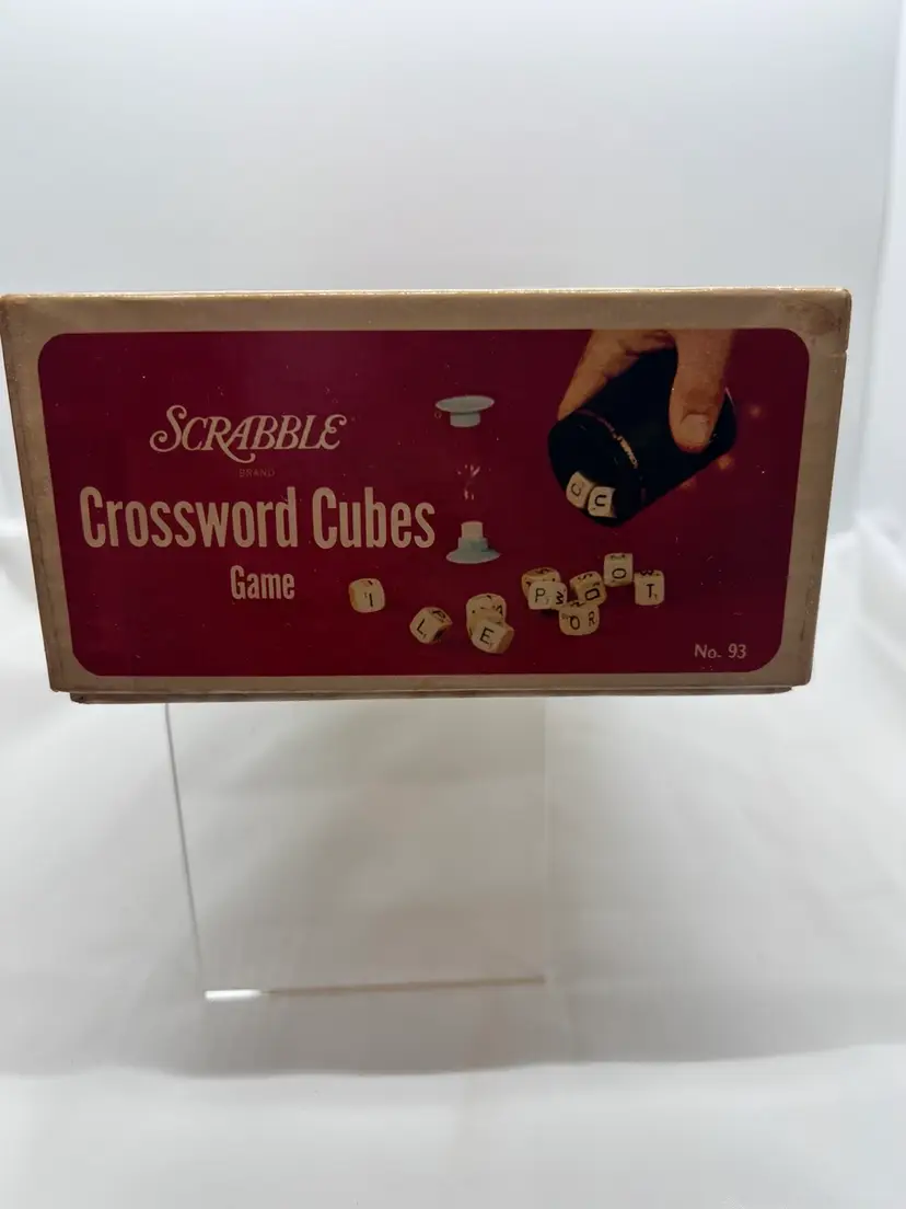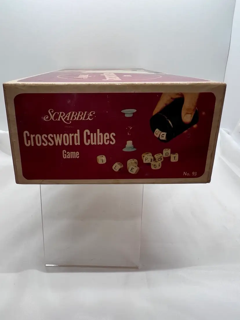 vintage game of Scrabble Crossword Cube in almost pristine condition. In original box with all pieces and even some scorecards. Box shows very little wear and graphics are excellent. 11 x 5 1/4 x 2 3/4”