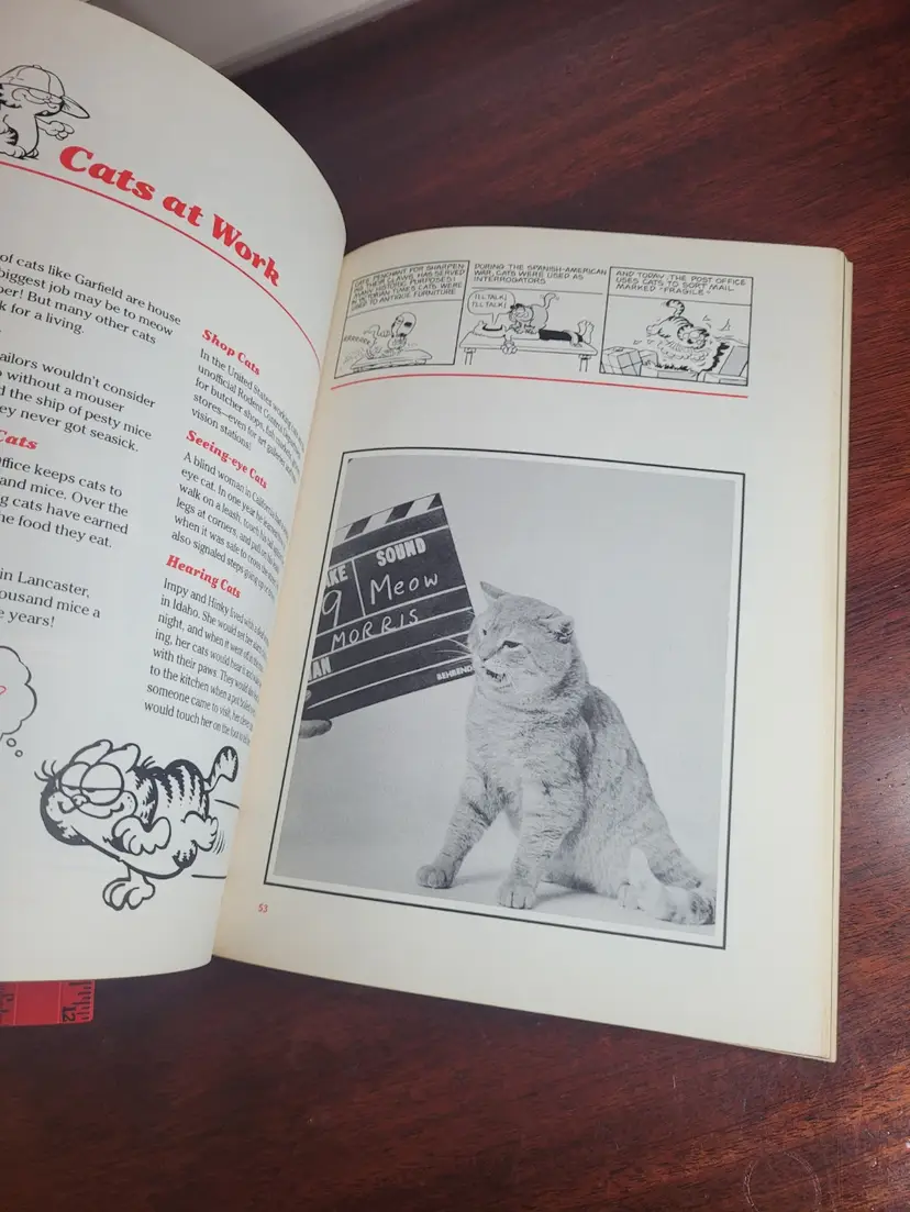 Paperback book that is GARFIELD talking about cats. There are cartoons mixed in with the pictures and descriptions of various cats, including other animated cats. A great fun book for the Garfield collector in your life.