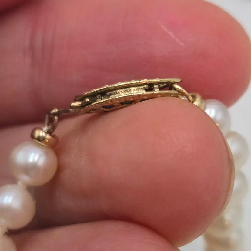 Hand Carved leaves. High Quality. Marked 14k / 20 on clasp. In excellent condition. Very little signs of wear from use. Please see pictures for more details.
