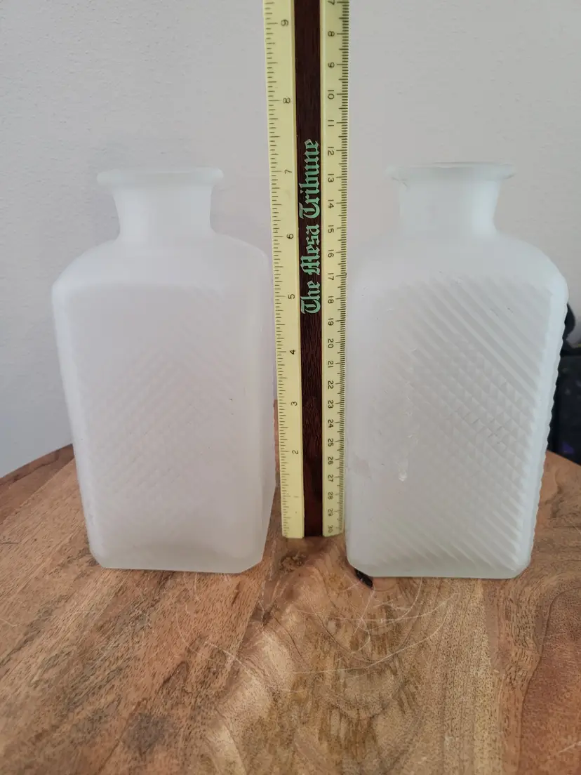 Nice shape decanters. Can be used as decor, vase, etc. Some slight faint marks on top of decanter opening, see pictures. Shipping cost is based on your location, size and weight of box item is shipped in. If you feel shipping cost is to high let me know what your zip code is and I can see if there is a cheaper option. Shipping is done by USPS, I choose cheapest option when listing but shipping will be USPS. I do combine shipping if you buy more than one item from my store. Any questions please do not hesitate to ask.