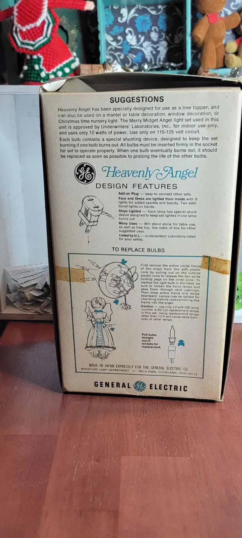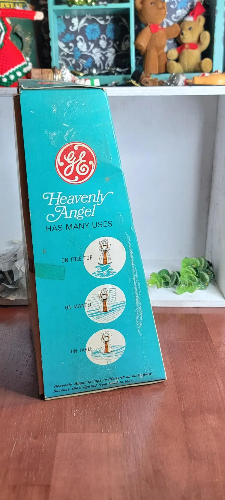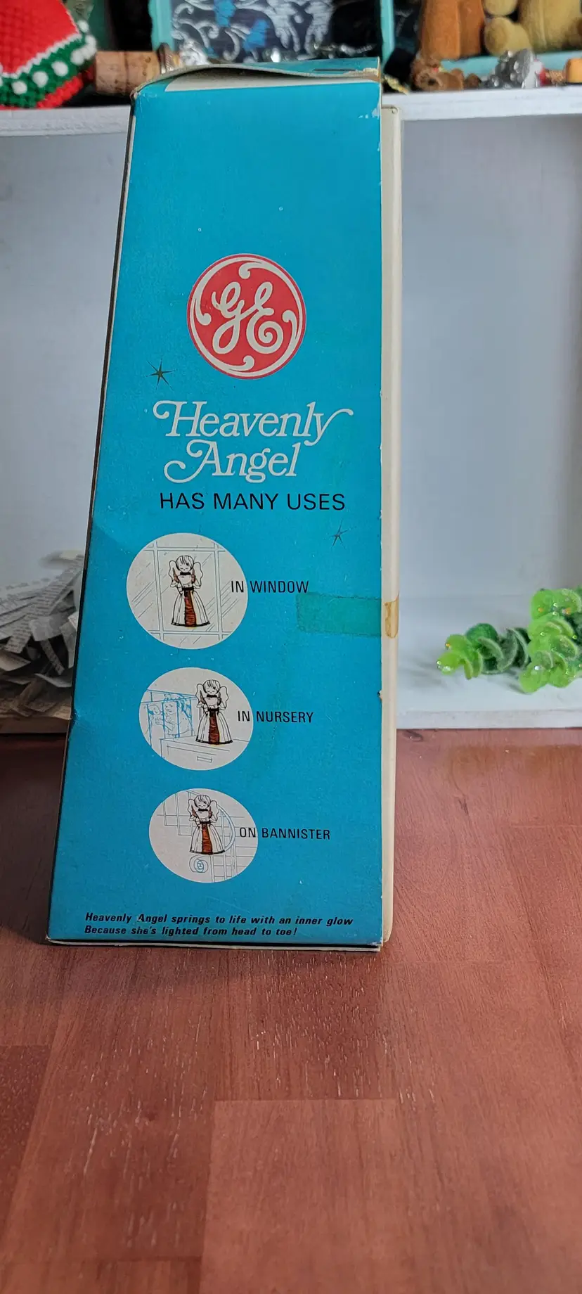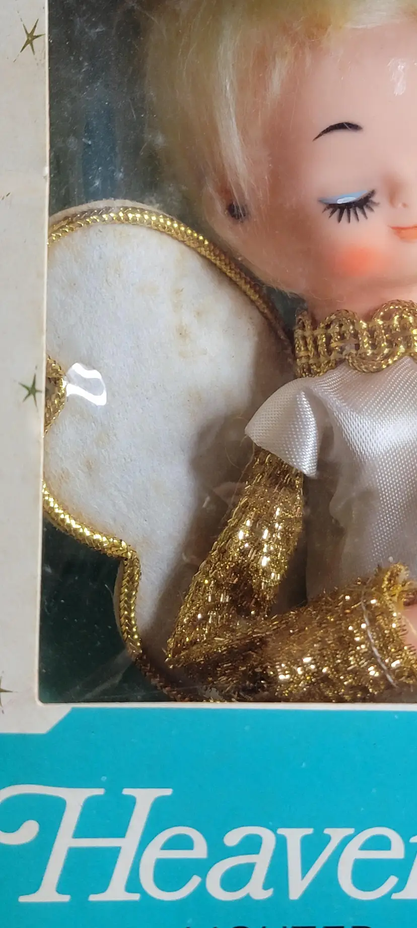 She works. Some age conditional issues from time (spotting on wings and ears). Box film is split but box is in great shape otherwise.