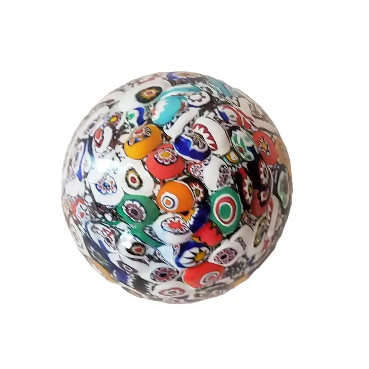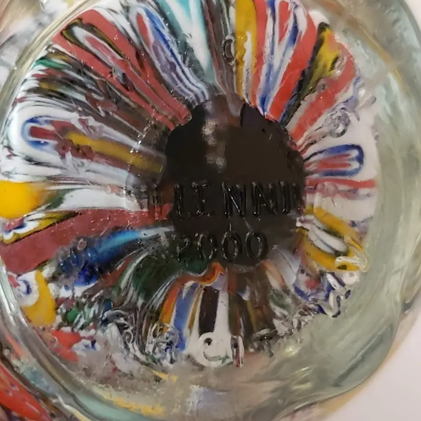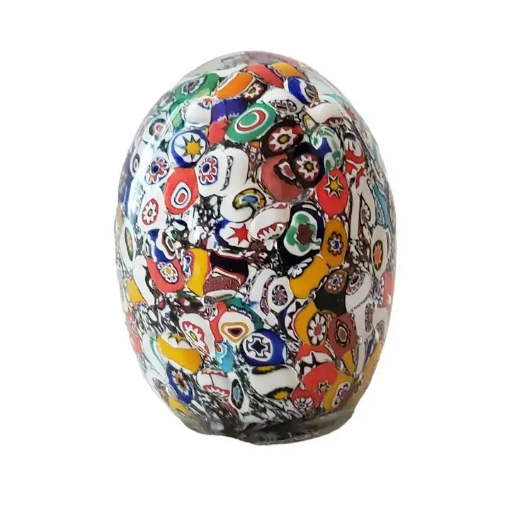 Vintage Gentile Art Glass Paperweight Millennium 2000 Heavily packed, colorful millefiori canes Brilliant colors Hand blown Made in Star City, West Virginia, USA Stamped - "Gentile Glass Millennium 2000 Star City WV" 3" tall Actual weight - 14.6 ounces Condition - No chips, nicks, cracks or scratches. See photos.