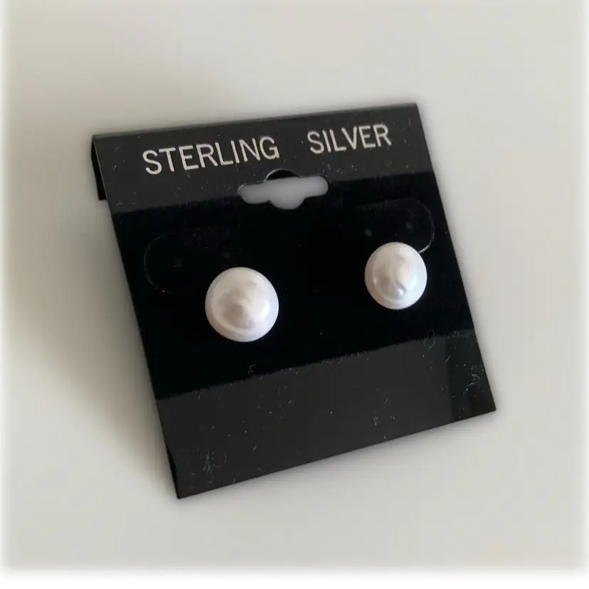 Vintage genuine pearl button earrings on sterling silver post. Marked 925. They do have a nice iridescebt sheen. The oearls measure 3/8” across.