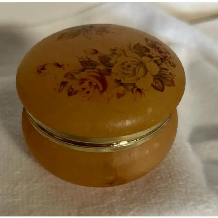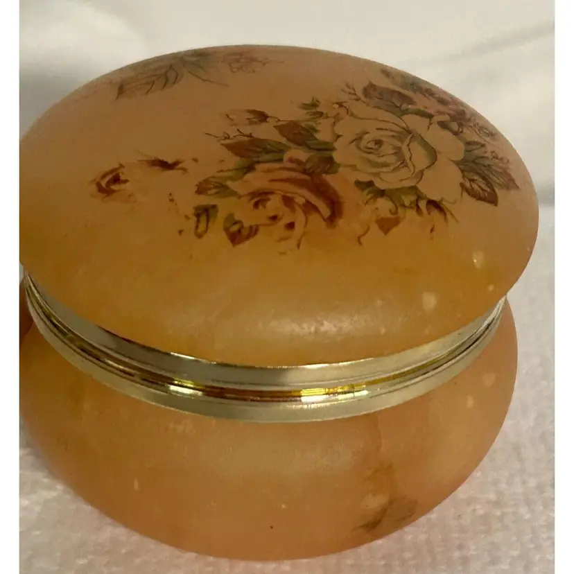 Vintage Genuine Alabaster Hand Carved Hinged Jewelry Trinket Box Made in Italy