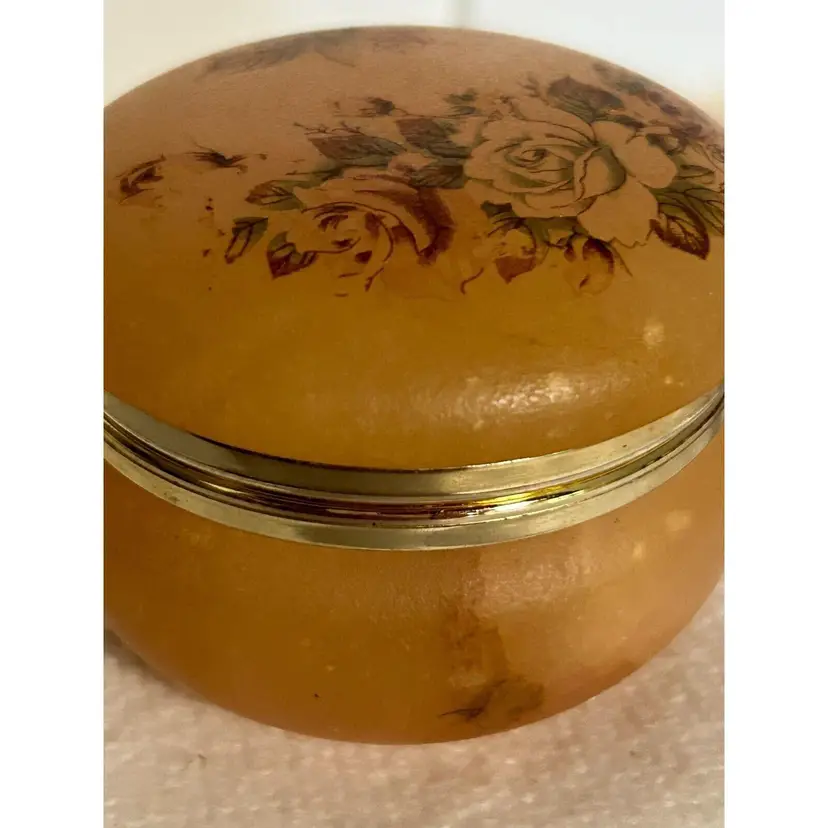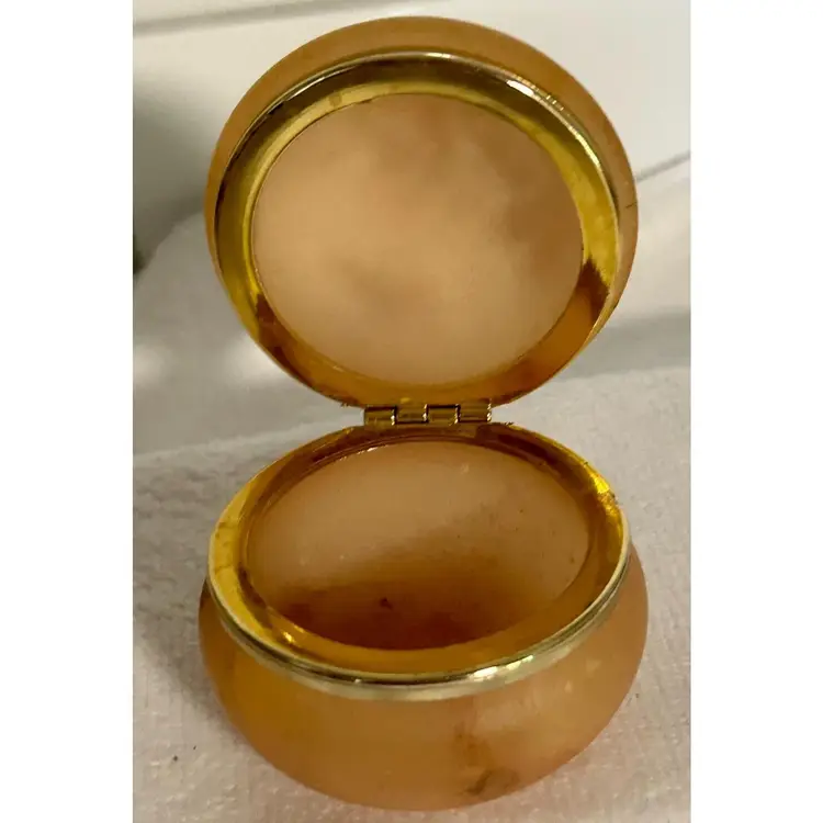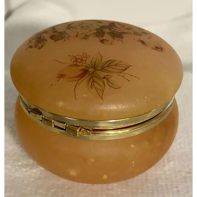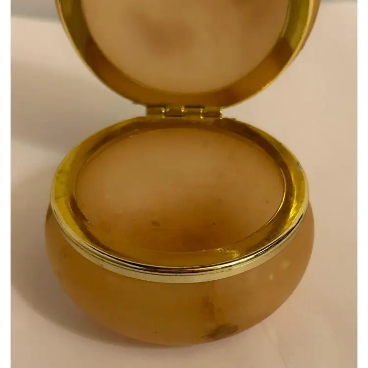 This Vintage Genuine Alabaster Hand Carved Hinged Jewelry Trinket Box Made in Italy is in vintage preowned condition, and it shows some wear consistent with its vintage age. Please review all pictures for proper assessment of its vintage preowned condition.