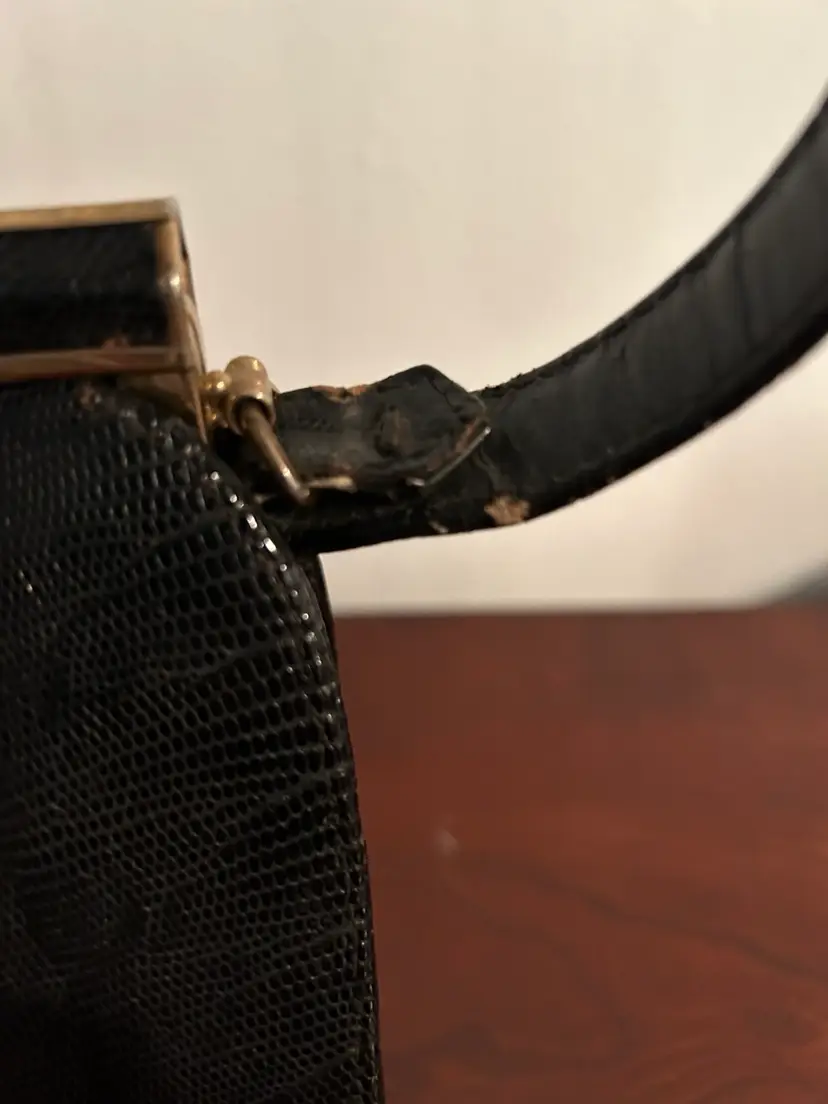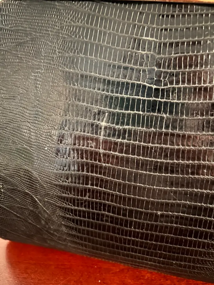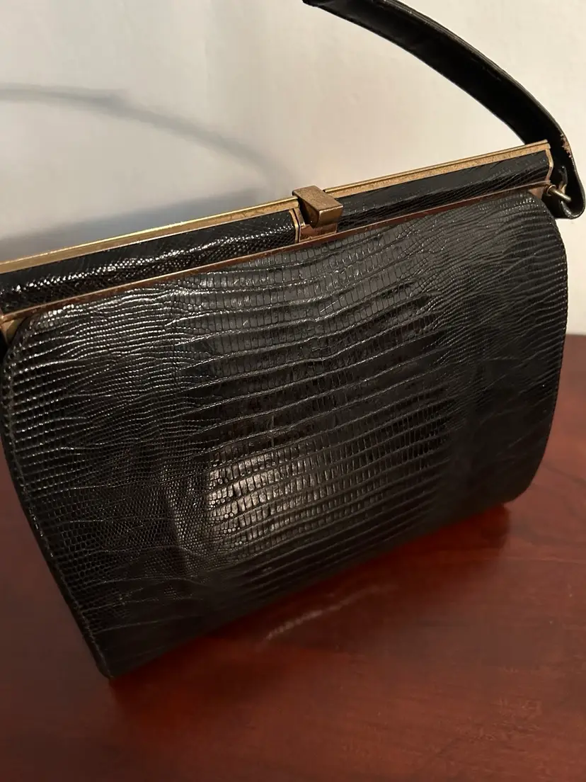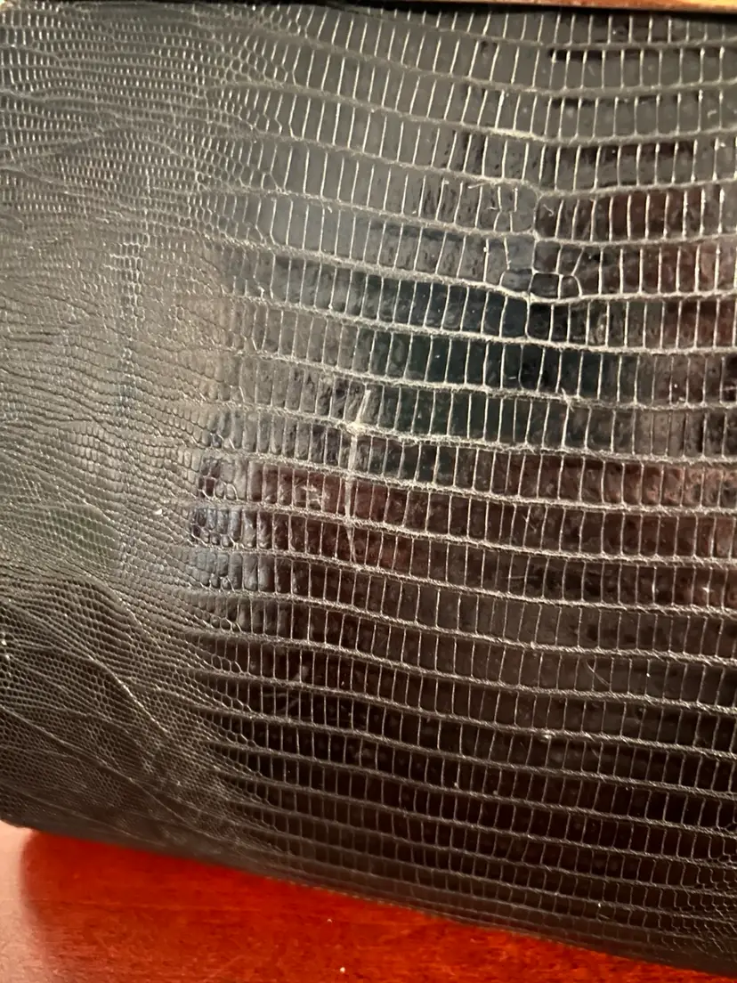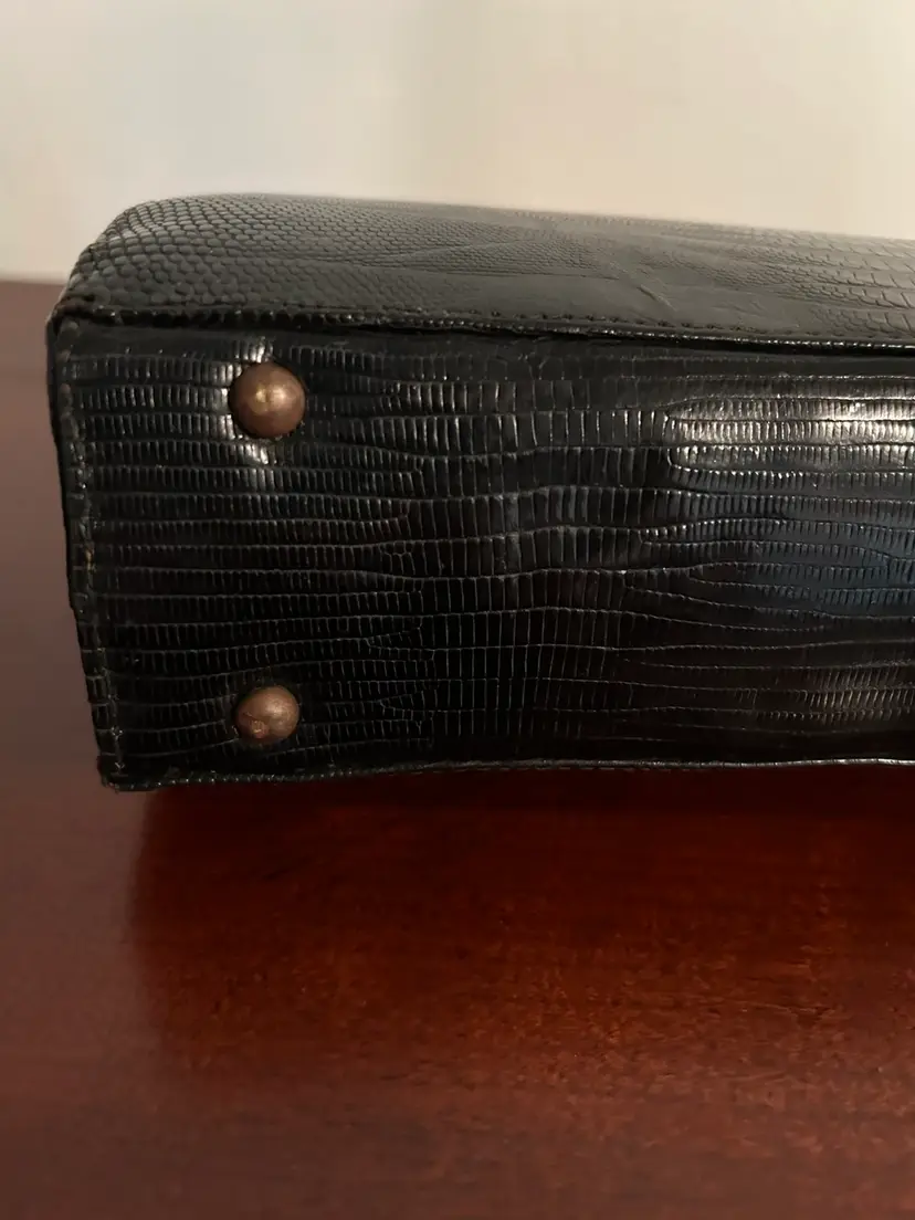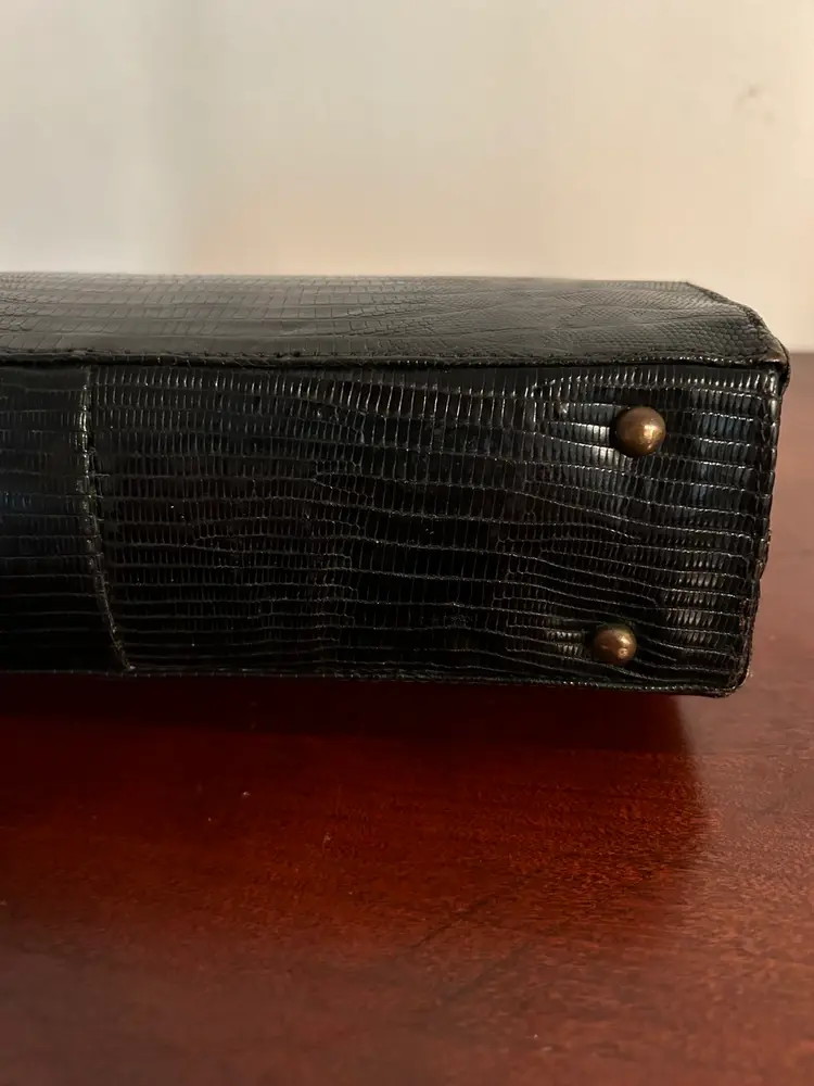 The bag itself is about 8 inches tall and 9 inches wide Custom crafted by Youngman- genuine lizard handbag.