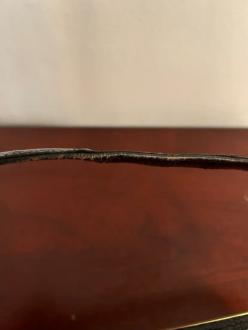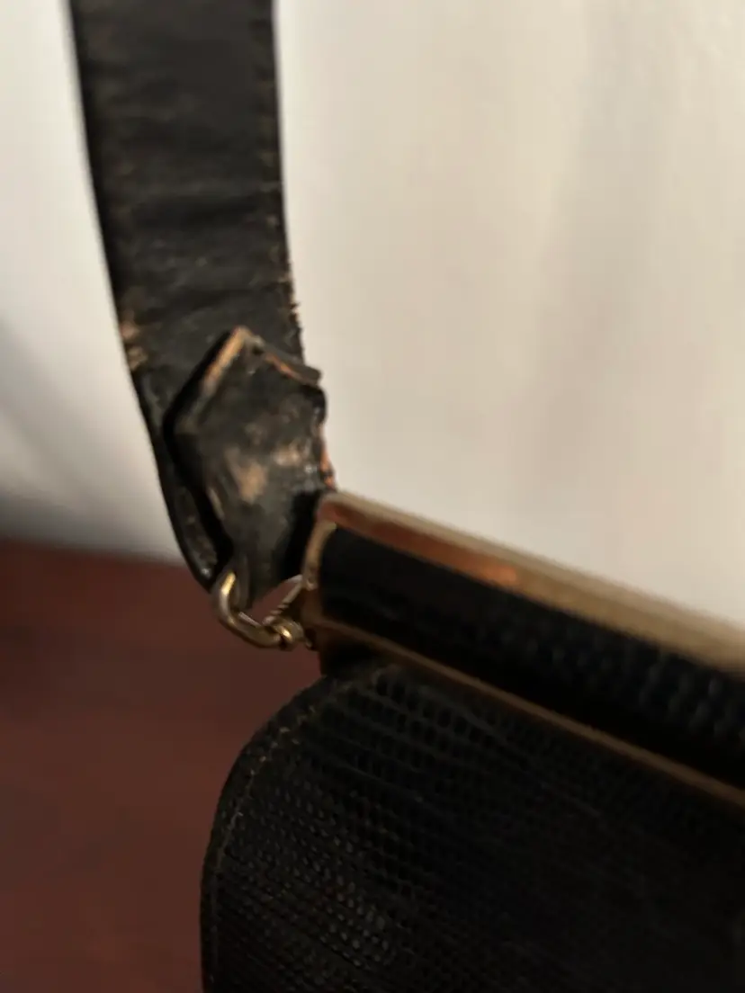 The strap- it needs help. It’s not broken completely but it is separated at a seam. There’s some wear in other places that may fade a bit with cleaning/conditioning. The seam itself will need to be repaired if you want to keep the strap instead of replace it.