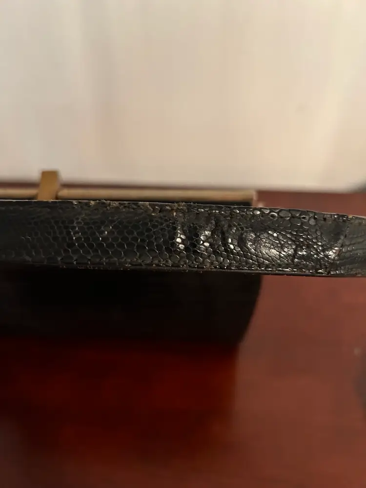 The bag itself is in really good condition. You can see a scratch in certain light, see pics. The scales on the sides by the hinges look pretty good. On one corner near the bottom there is a white mark. I have no idea if it will come off as I’m too scared to try it. It doesn’t stand out.