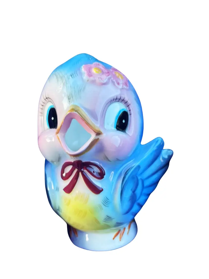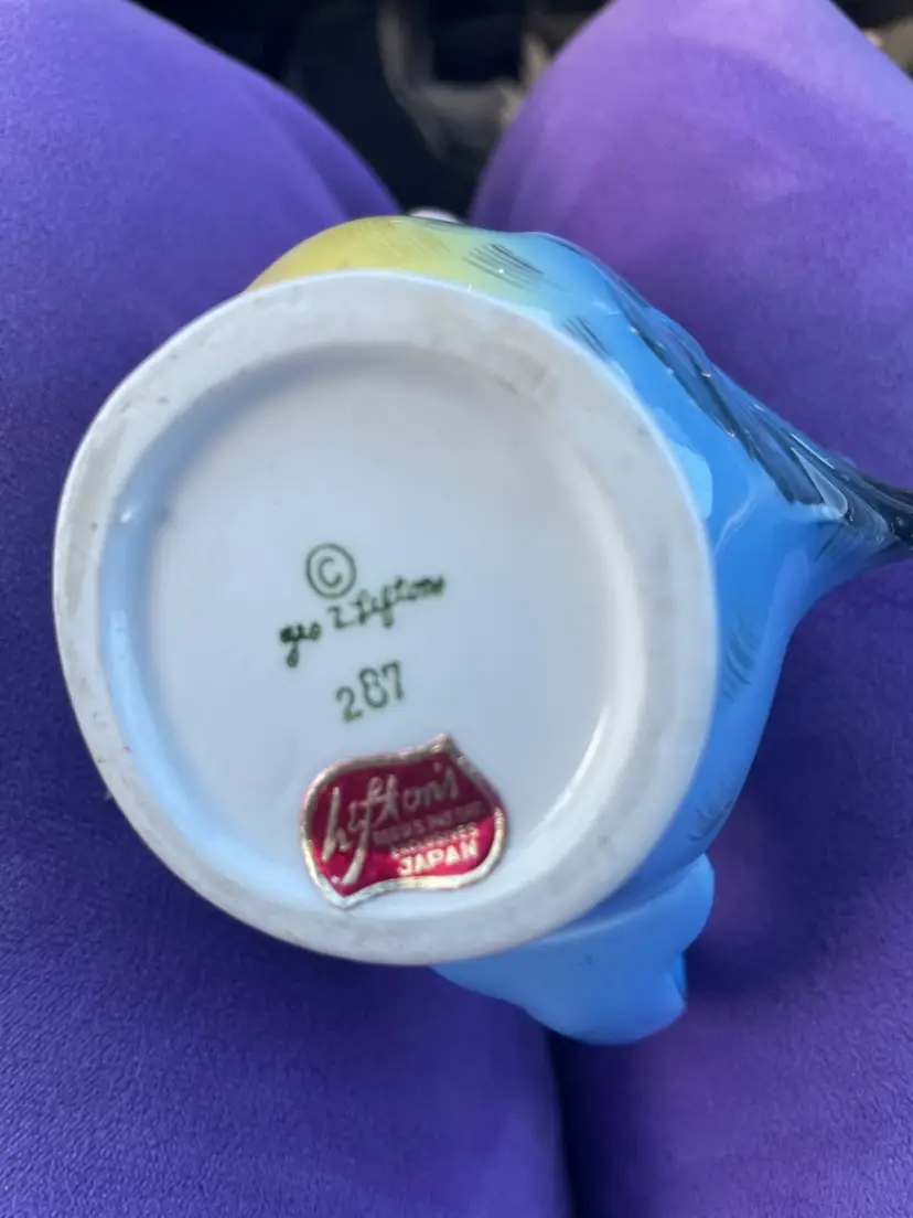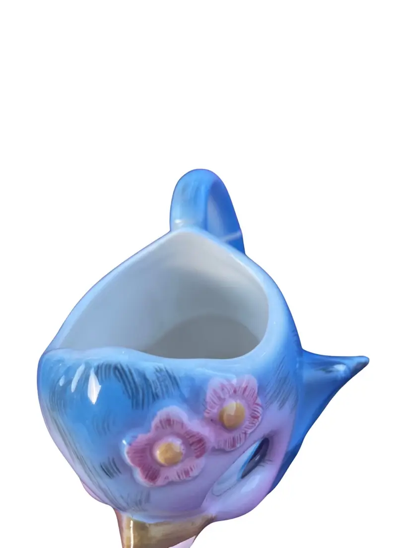 Amazing Blue Bird Creamer. No cracks, No Crazing, Sticker, Signed, tiny flea bite on wing.