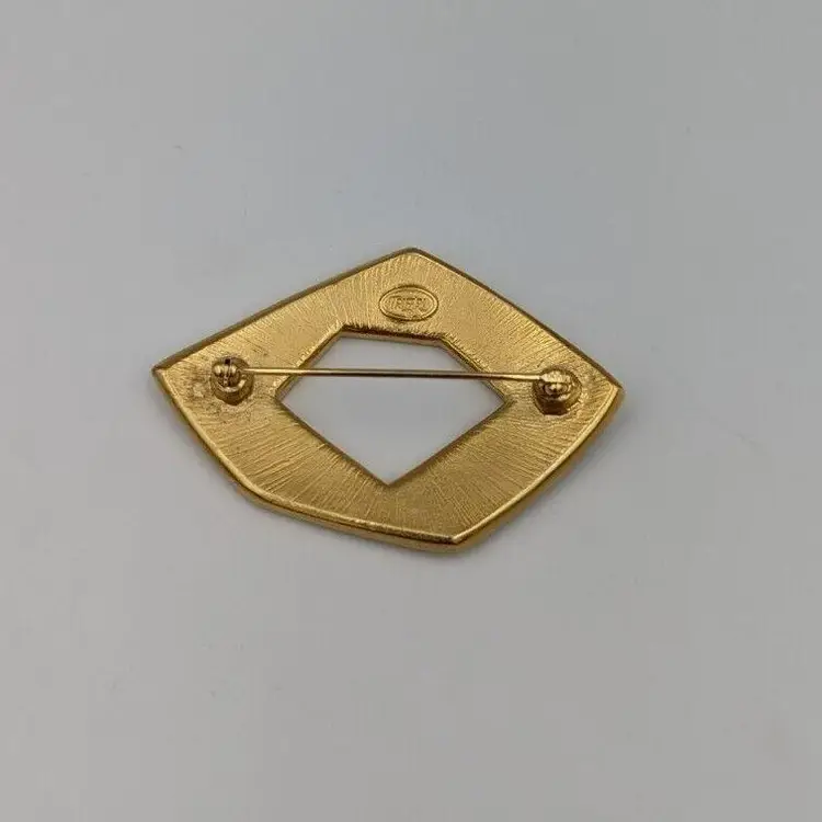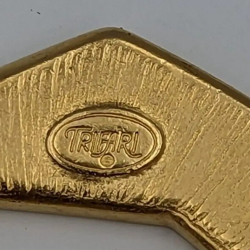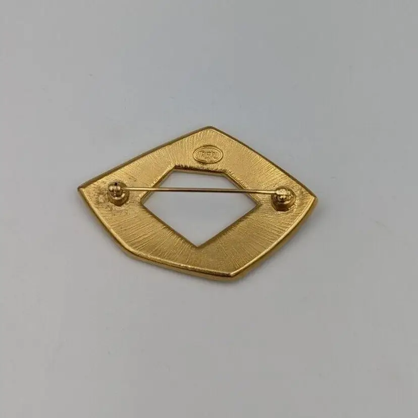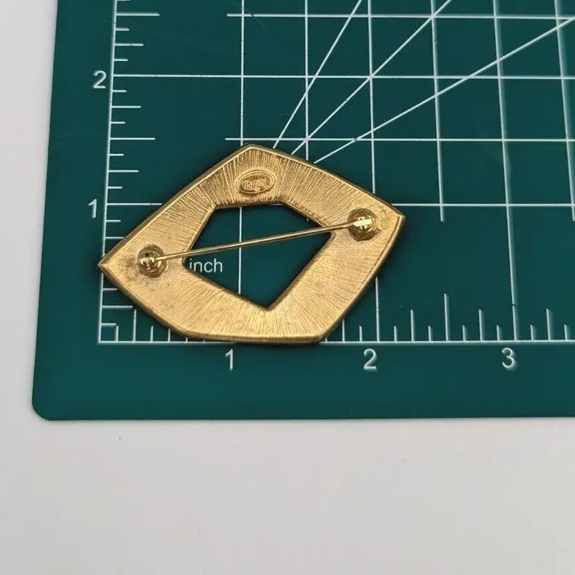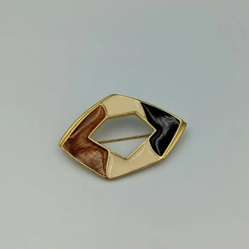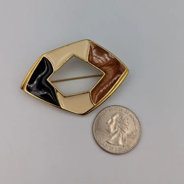 Beautiful Vintage Geometric Design with Brown/Ivory/Black Color Enameling Trifari Brooch Good vintage condition Measurements 2 1/4"