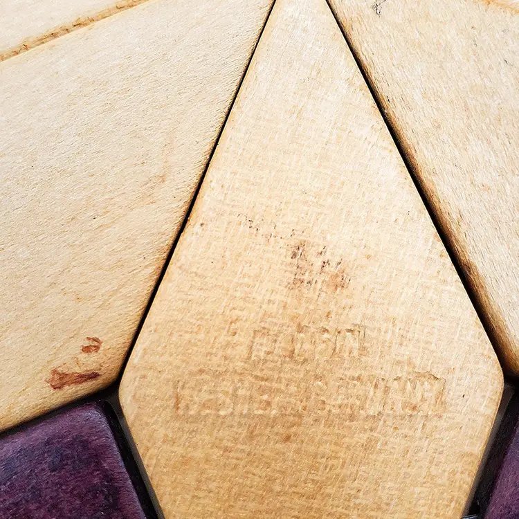 Approx 6.75" diameter. Has "Made in West Germany" stamped on the bottom. Pieces are held together by clear string that resembles fishing wire. Has minor scratches but overall in excellent vintage condition.
