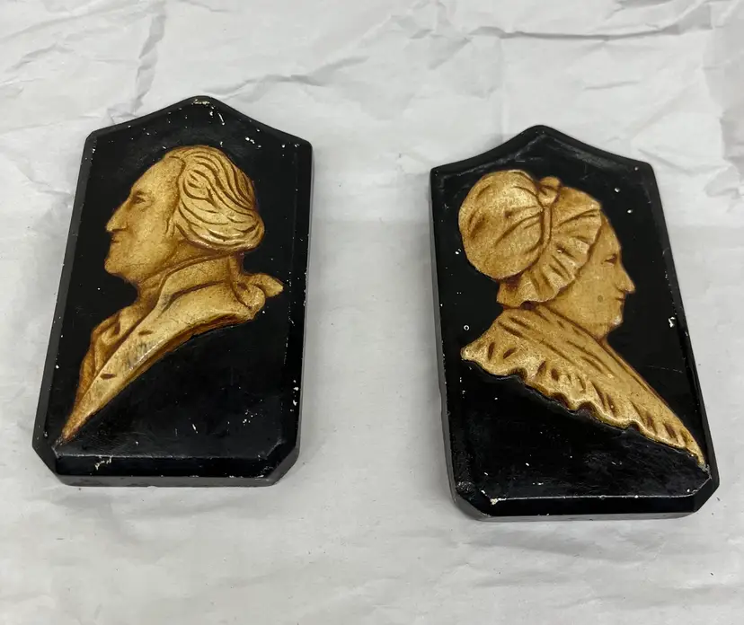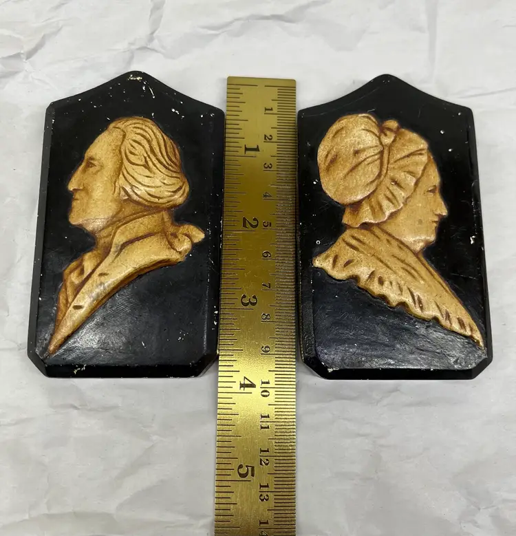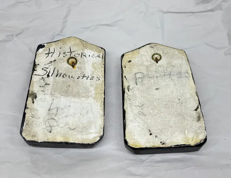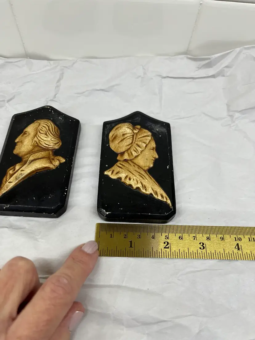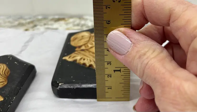 Approximately 4” x 2”. Nu-Stone. Good Vintage condition. A few chips on black paint.