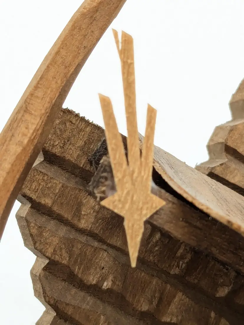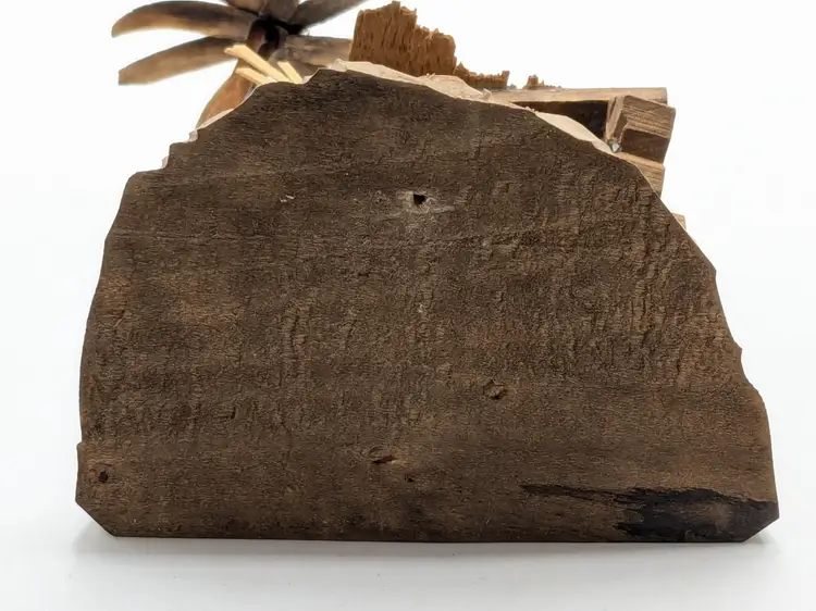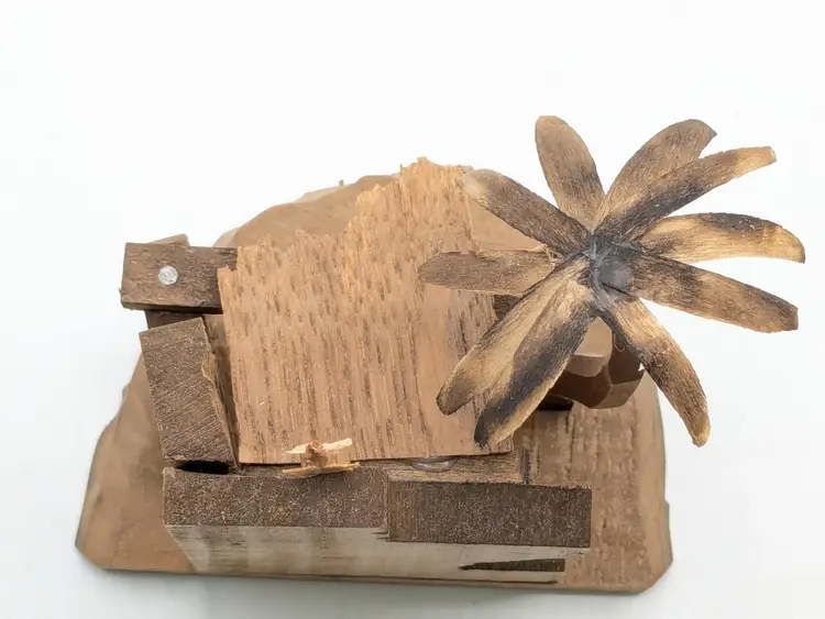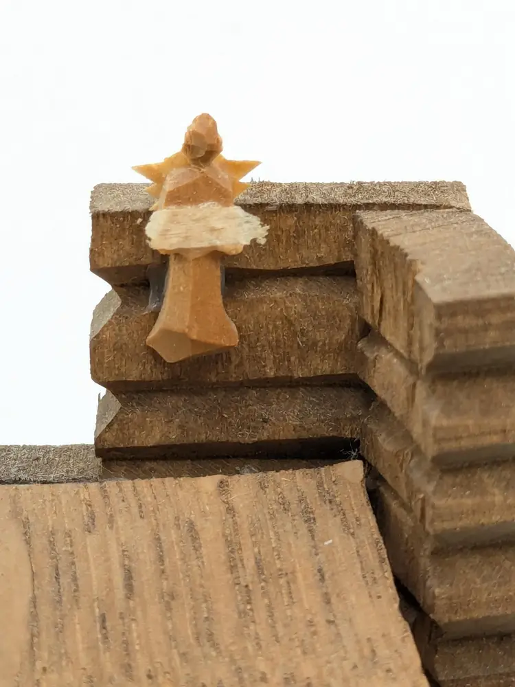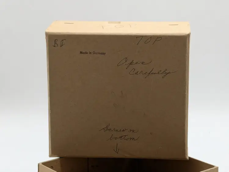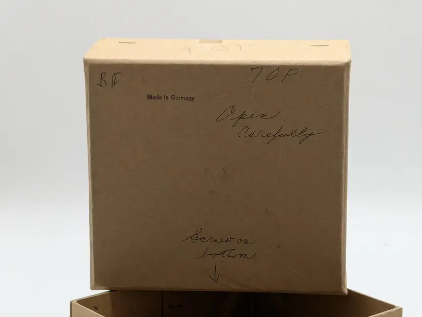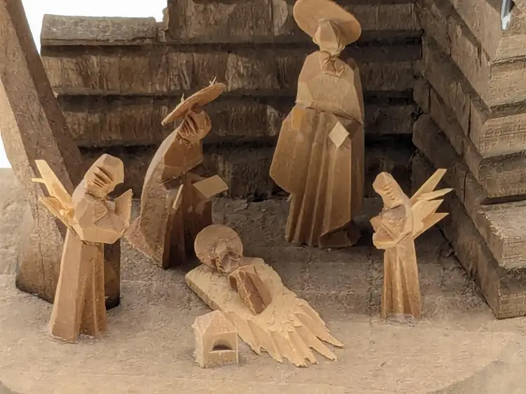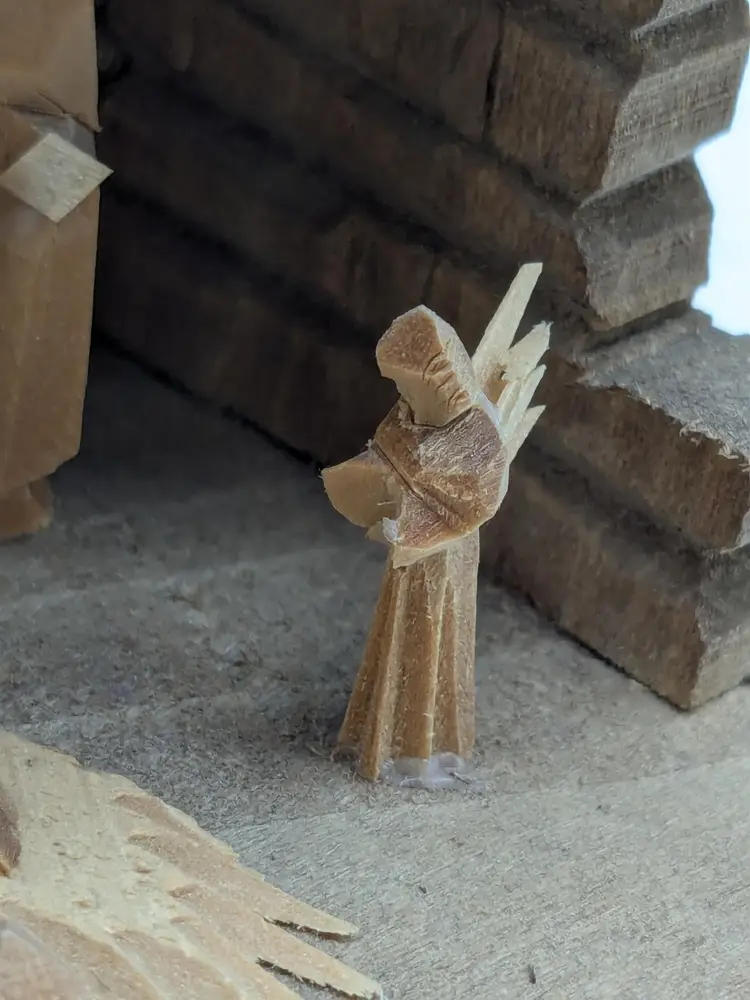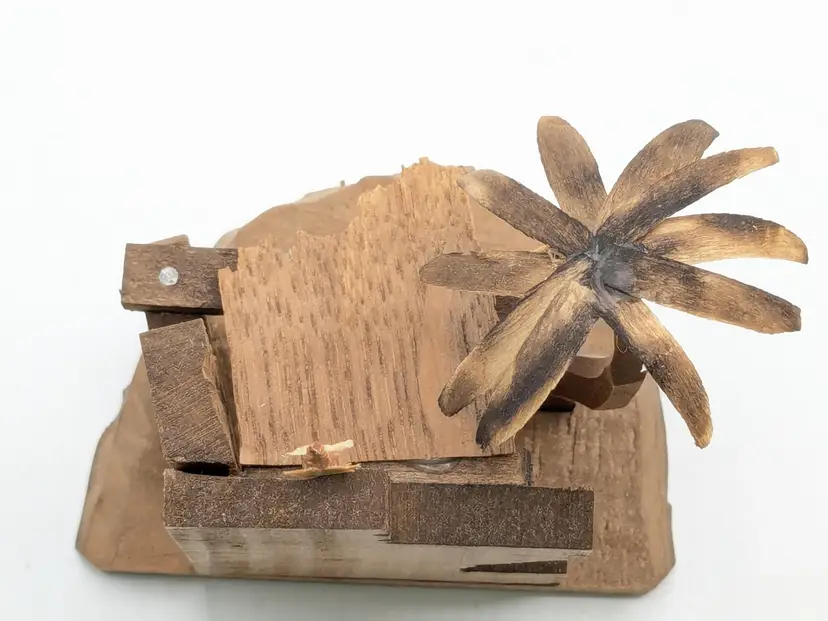 Good vintage condition. Beautifully handcrafted wooden nativity scene featuring detailed figures in a rustic stable. Perfect for adding a touch of tradition to your holiday decor. Measures approximately 4 1/2" H x 3 1/2" W. Box is in good condition as well for the age. (ENS)