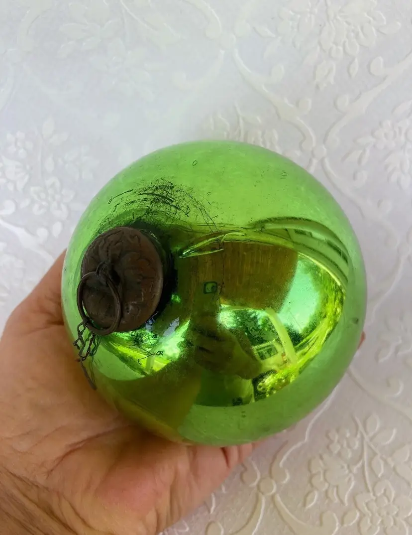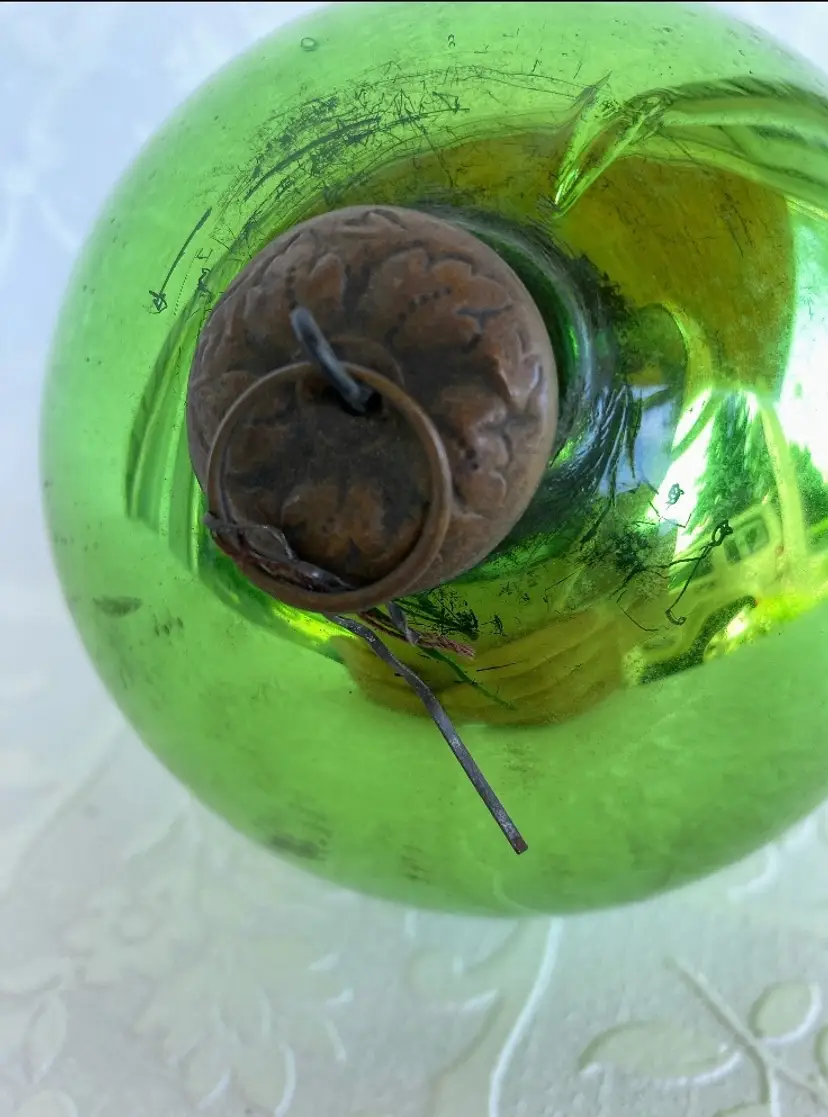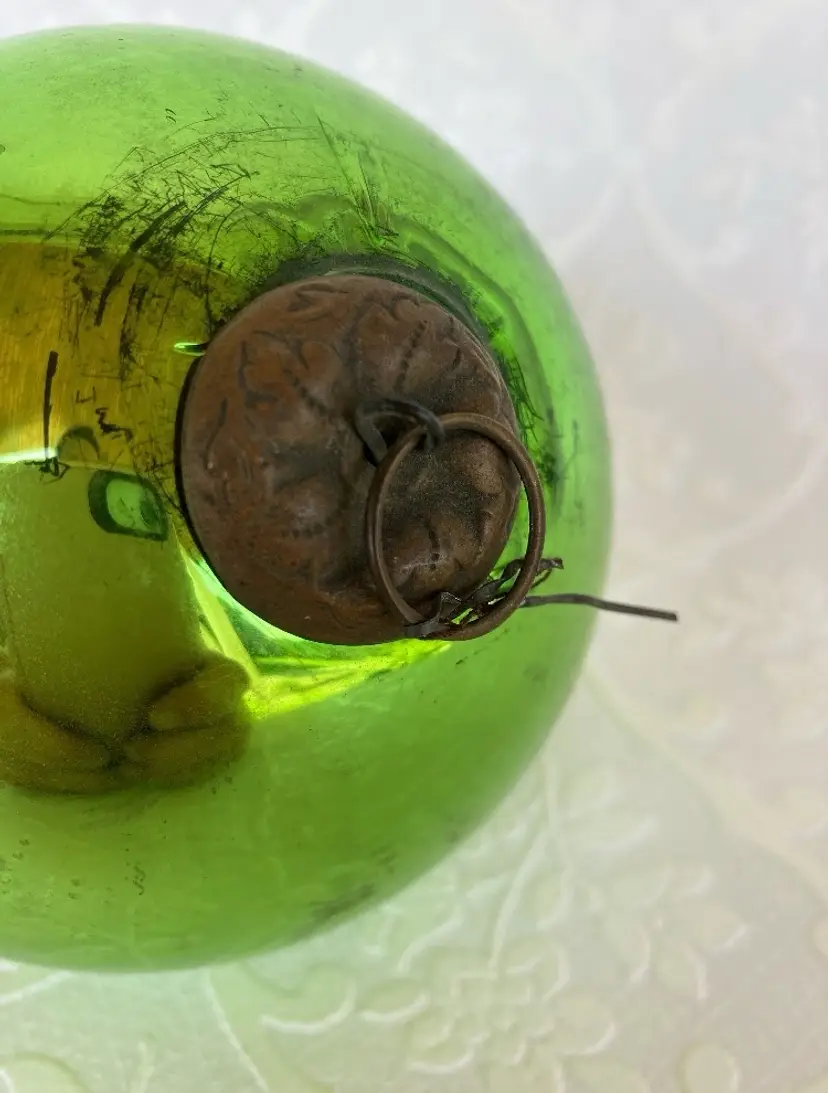 Very collectible Antique German Kugel complete with original bronze cap and loop.