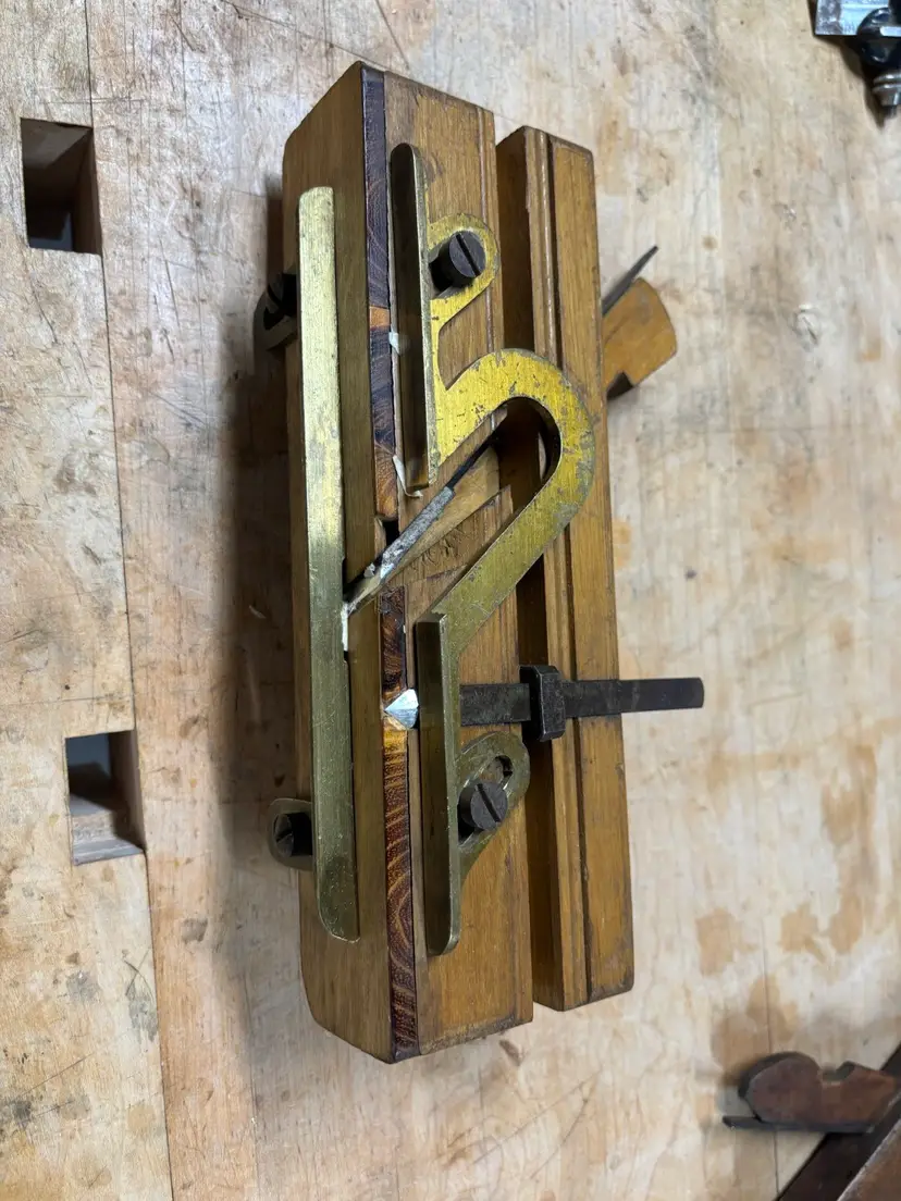 Beautifully made wood body with metal threaded inserts and cast brass fences. Has scribing knife for cross grain work. Cheaper than the same on on eBay.