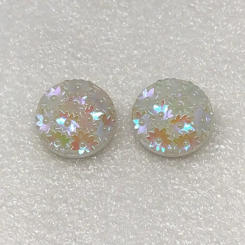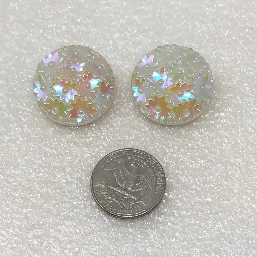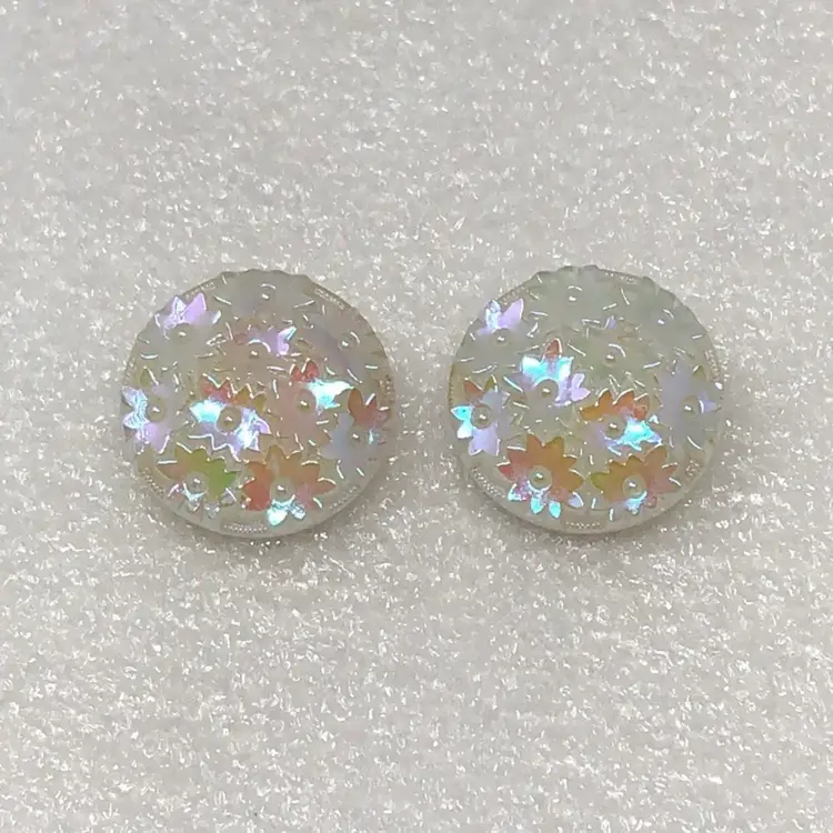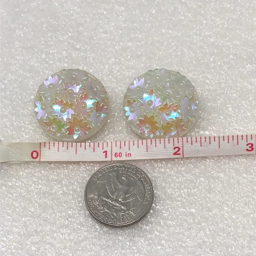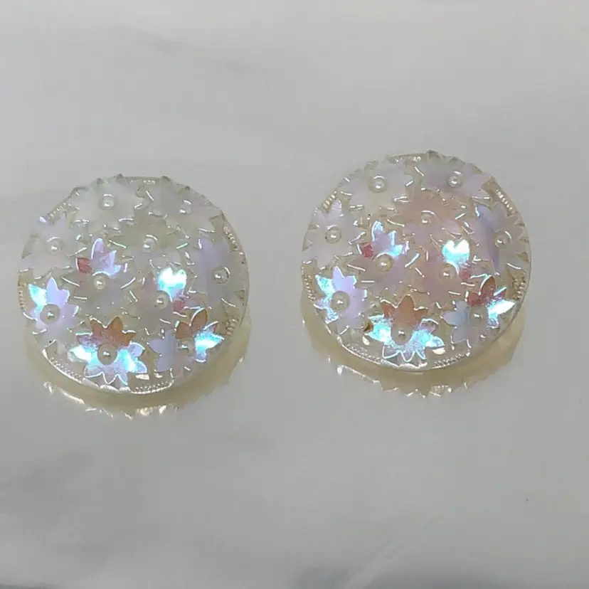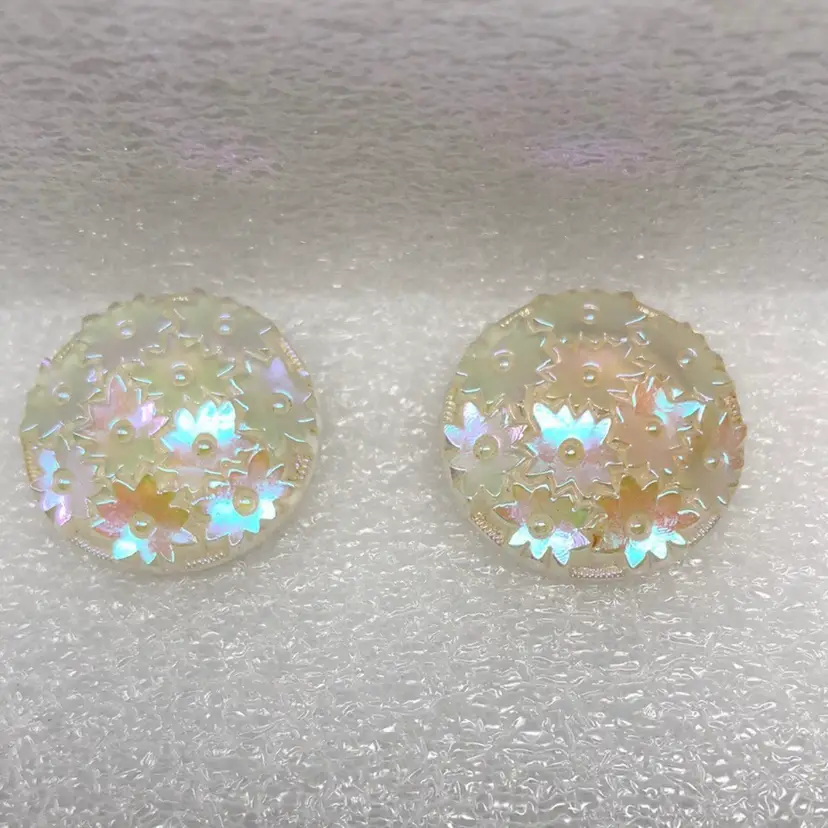 Add a touch of elegance with these iridescent floral earrings. Perfect for any occasion.
