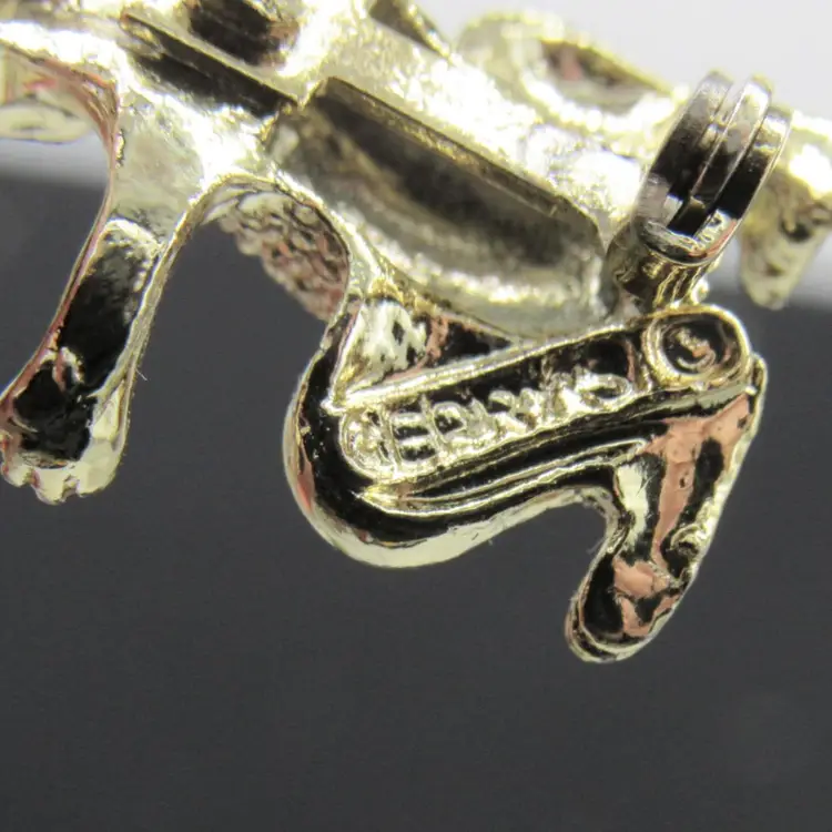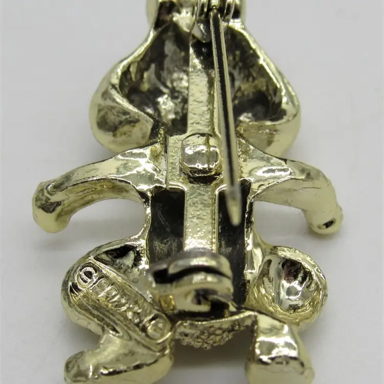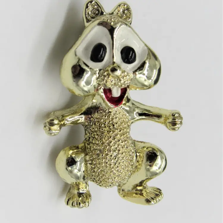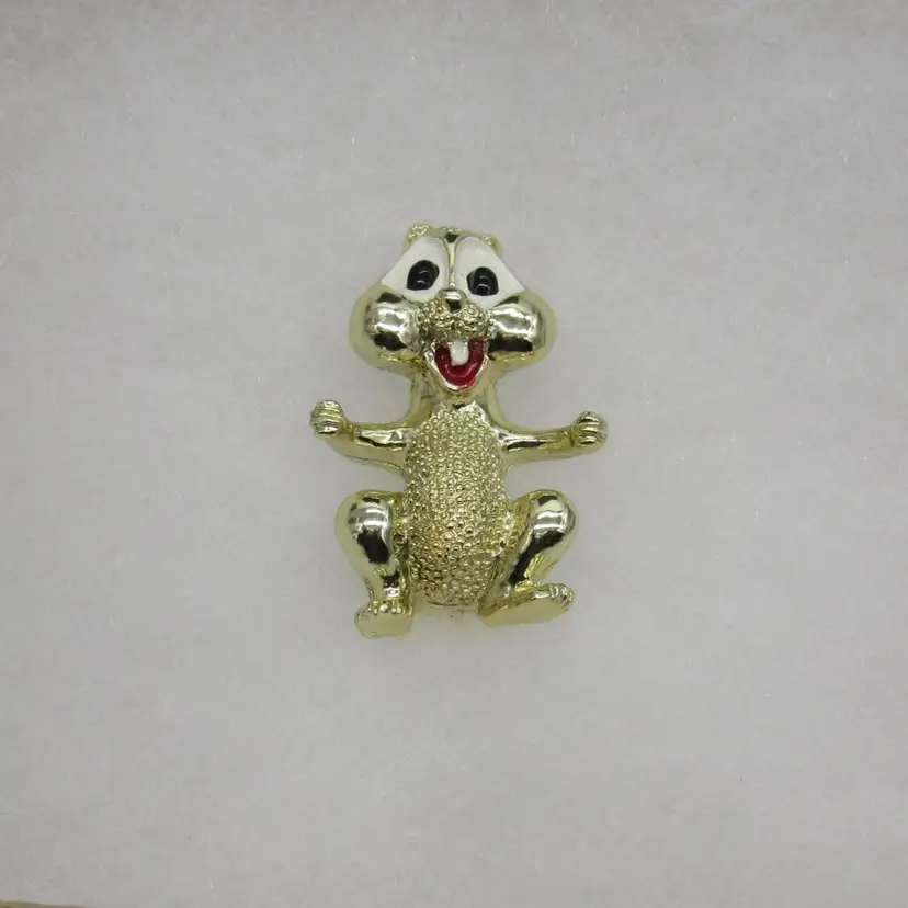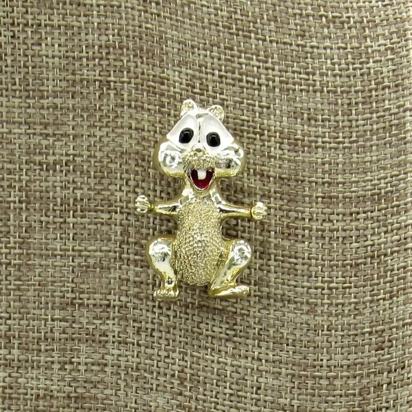 Adorable gold toned metal and enamel (I say chipmunk) chipmunk/squirrel/beaver pin by Gerry's Creations, Inc. Pin measures 1 1/4" tall by 1/2" wide and is in excellent condition. You'd be hard pressed to be in a bad mood wearing this cutie!