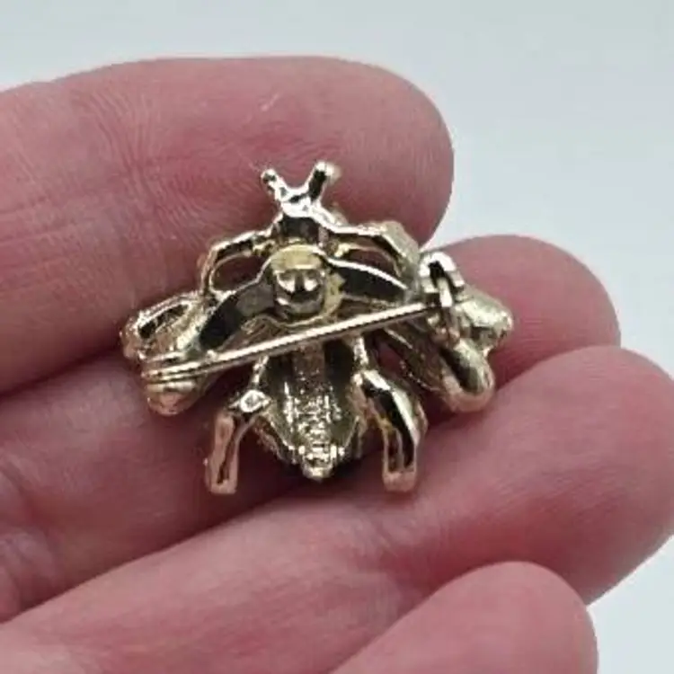 Vintage bumble bee pin marked Gerry's. Measures 3/4" x 3/4". Some wear to the enamel.