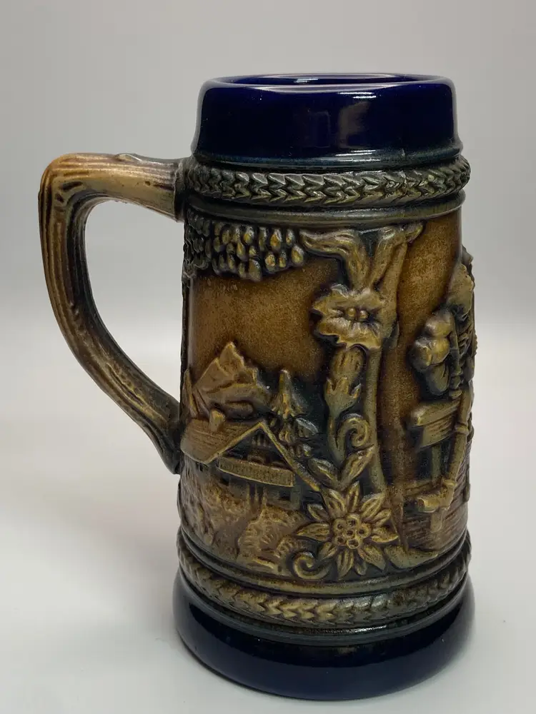 Experience a touch of German heritage with this vintage Gerz beer stein. Crafted in Germany, the stein stands at an impressive 5 inches tall and measures 4 inches in width, making it a substantial addition to any breweriana collection. Adorned with classic Bavarian motifs, this Gerz stein is more than just a drinking vessel; it's a piece of history.