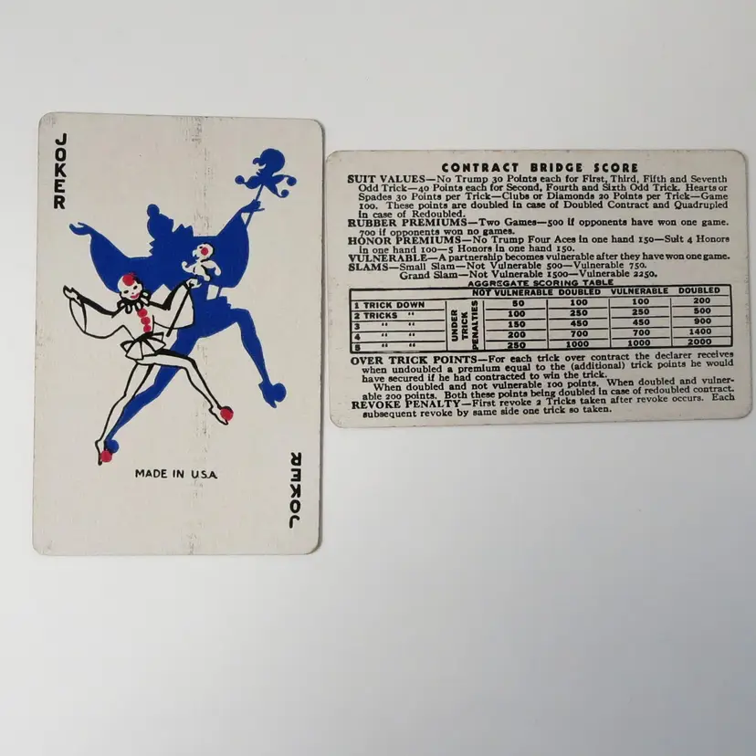 Both decks are complete with jokers, and there is card about bridge scoring.