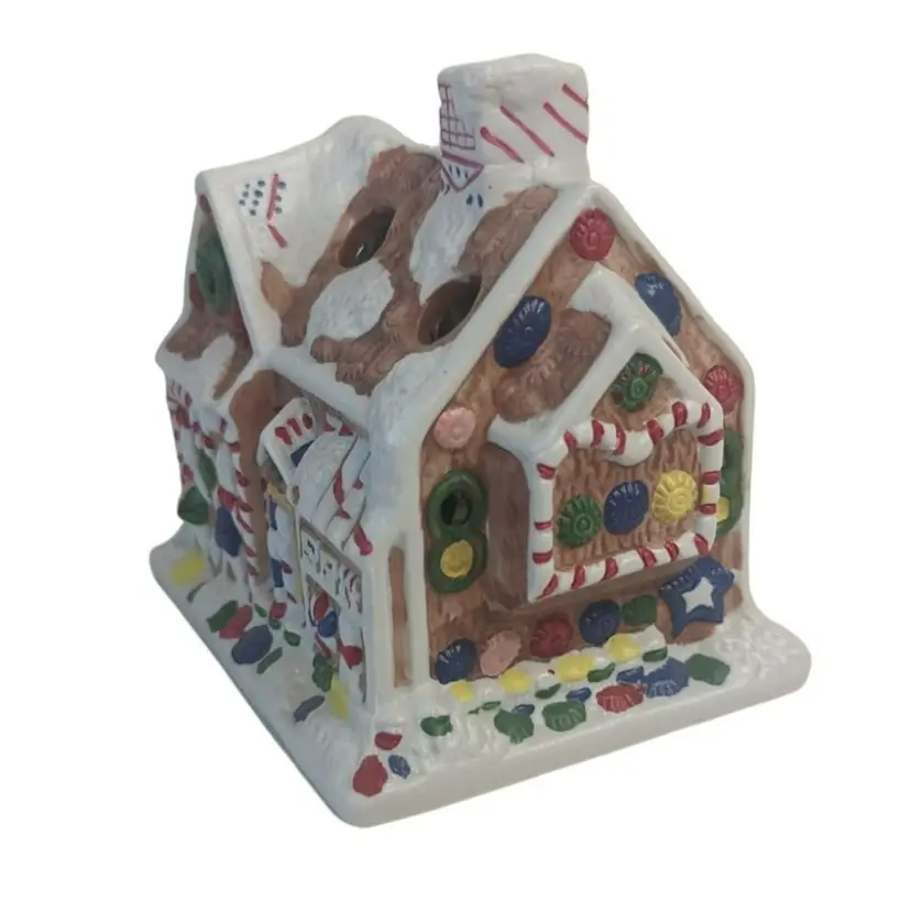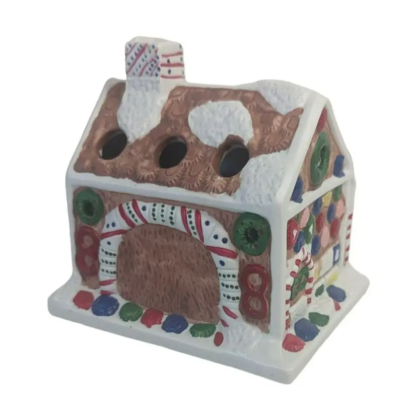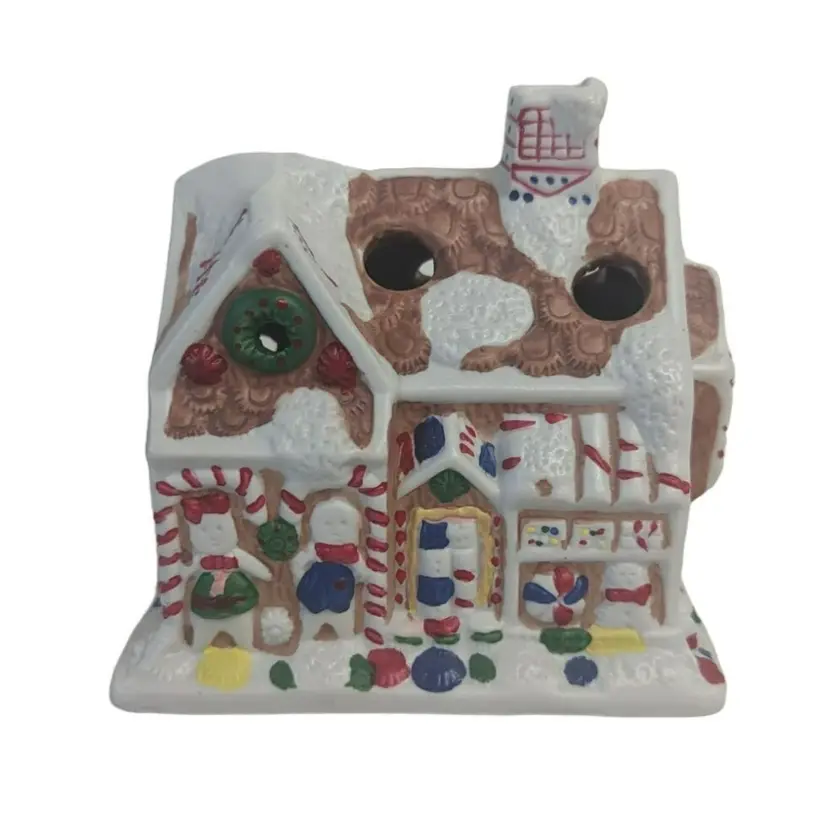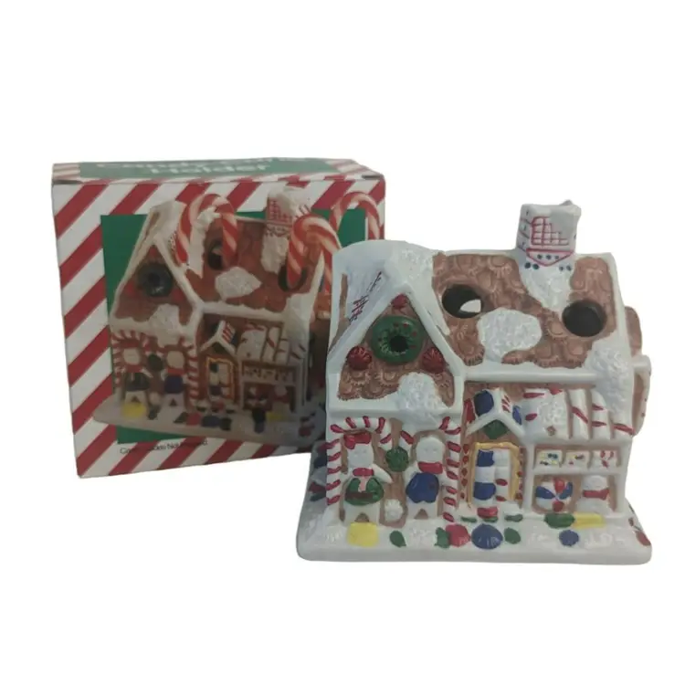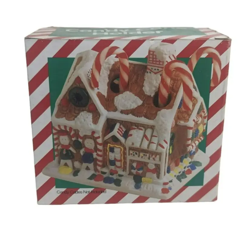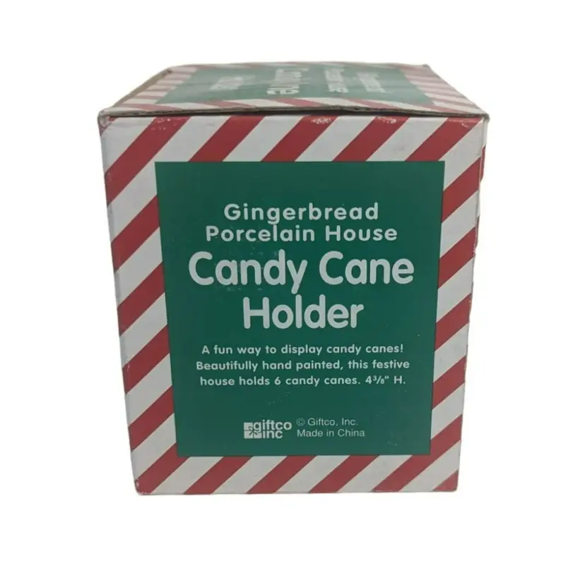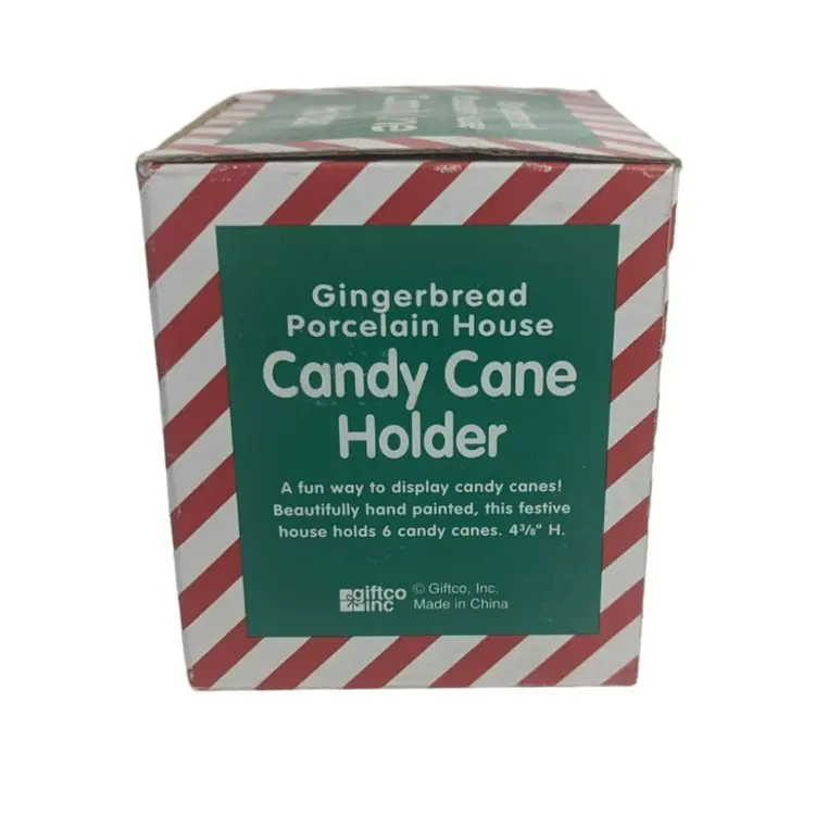 Vintage Giftco Gingerbread Porcelain House Candy Cane Holder Christmas Decor. Condition is new. This is a great way to made an office, home, or school festive. Holds 6 candy canes and measures: 4" x 4" x 3¾" (PM02)202311009