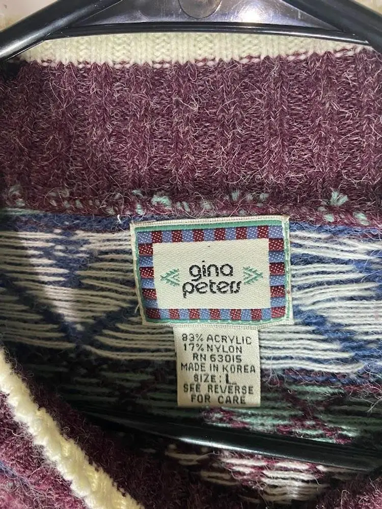 Women's vintage Gina Peters multicolored acrylic sweater. Great condition. Size L. Pit to pit: 20.5". Total length: 26". Sleeve length: 21".