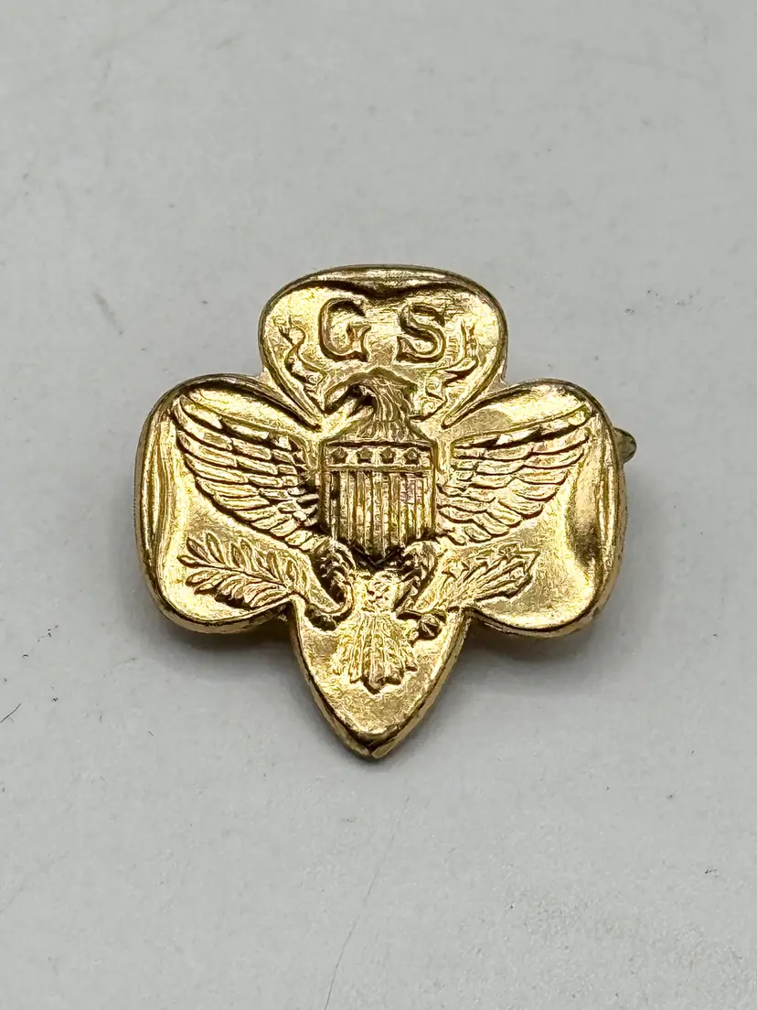 Vintage Girl Scouts GS Trefoil Eagle USA Membership Pin Brooch. Gs Girl Scout pin with eagle design. Vintage pin. MN56H.
