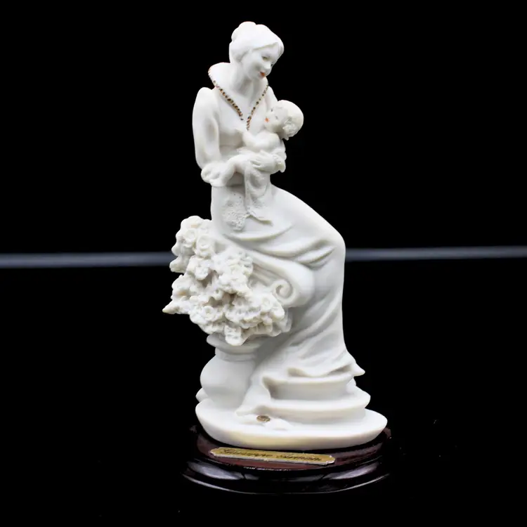 Vintage Capodimonte Giuseppe Armani Figurine – Mother & Child Bisque Porcelain on Wood Base, Signed, Made in Italy, 1992 Florence
