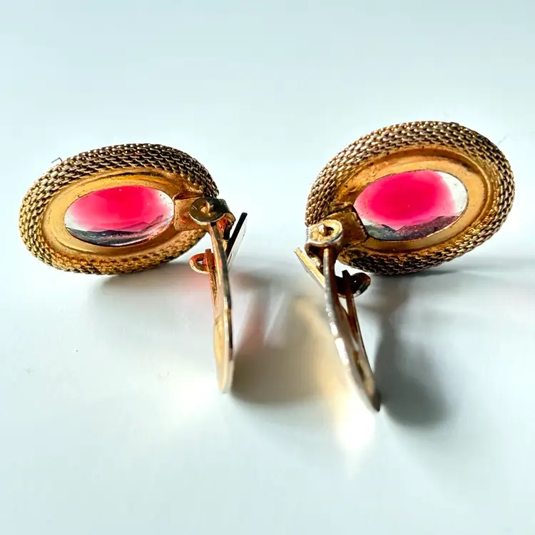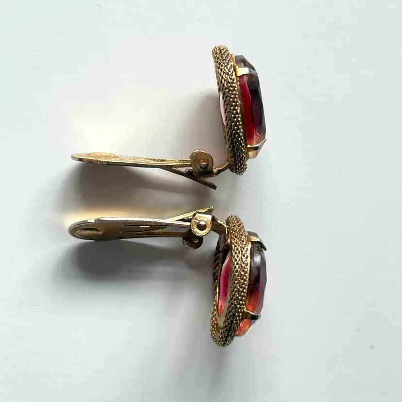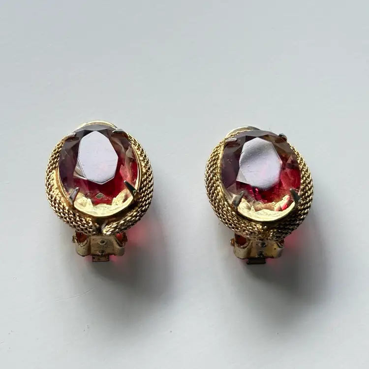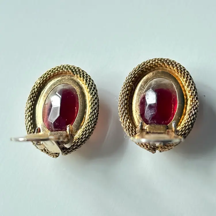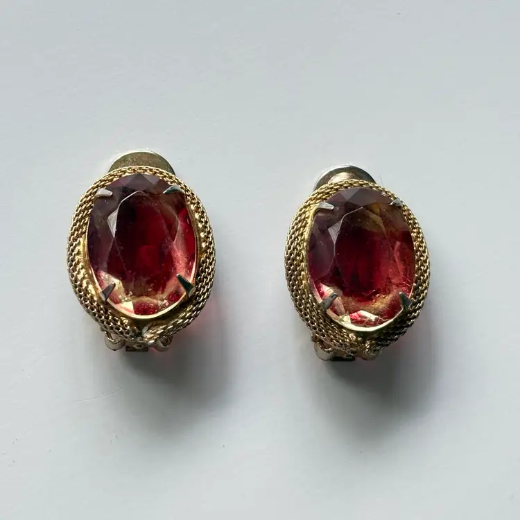 Vintage Givre red clear glass earrings oval gold tone mesh clip-on earrings classic tailored