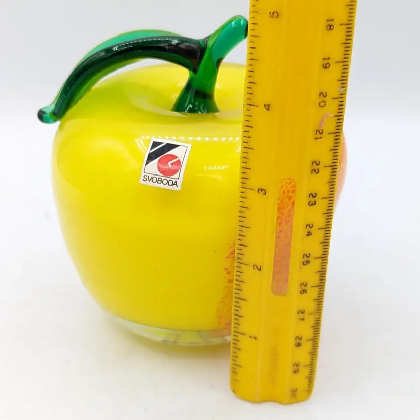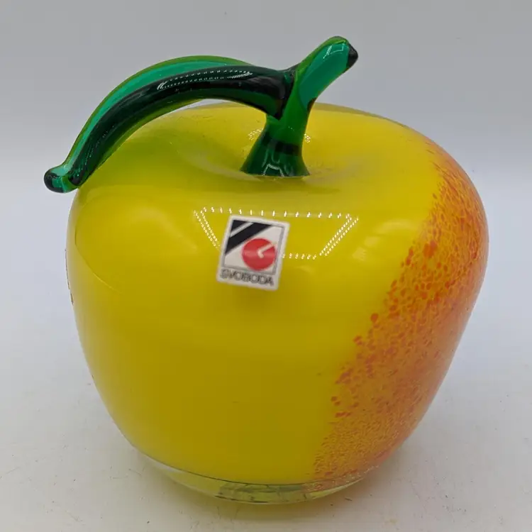 Vintage Glass Apple Paperweight by SVOBODA KARLOV Hand Made in Czech Republic Heavy Art Glass Cased Glass No Cracks or Chips Original paper sticker