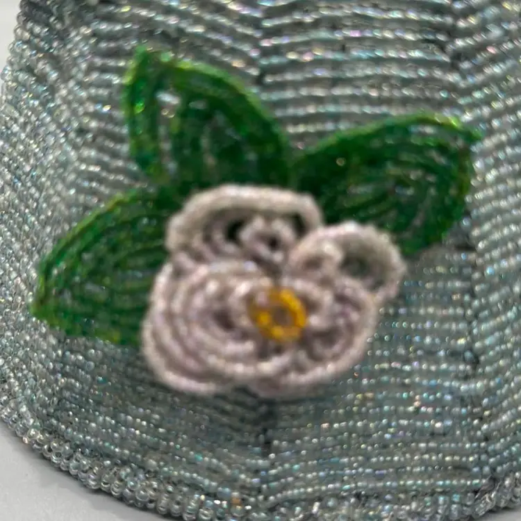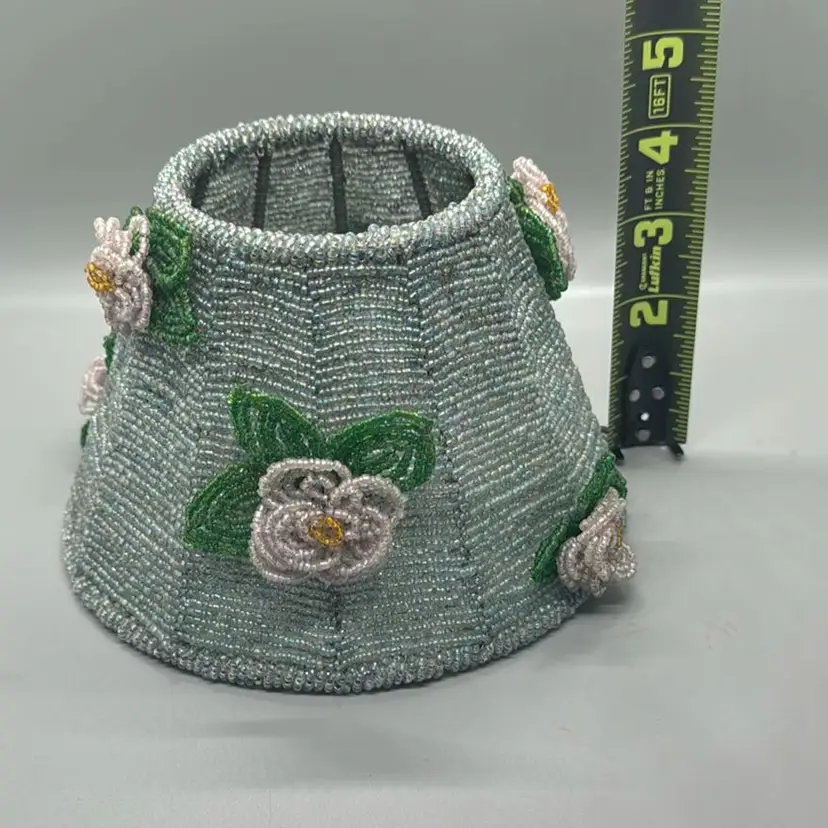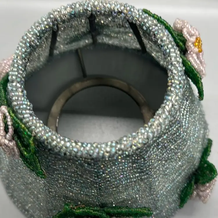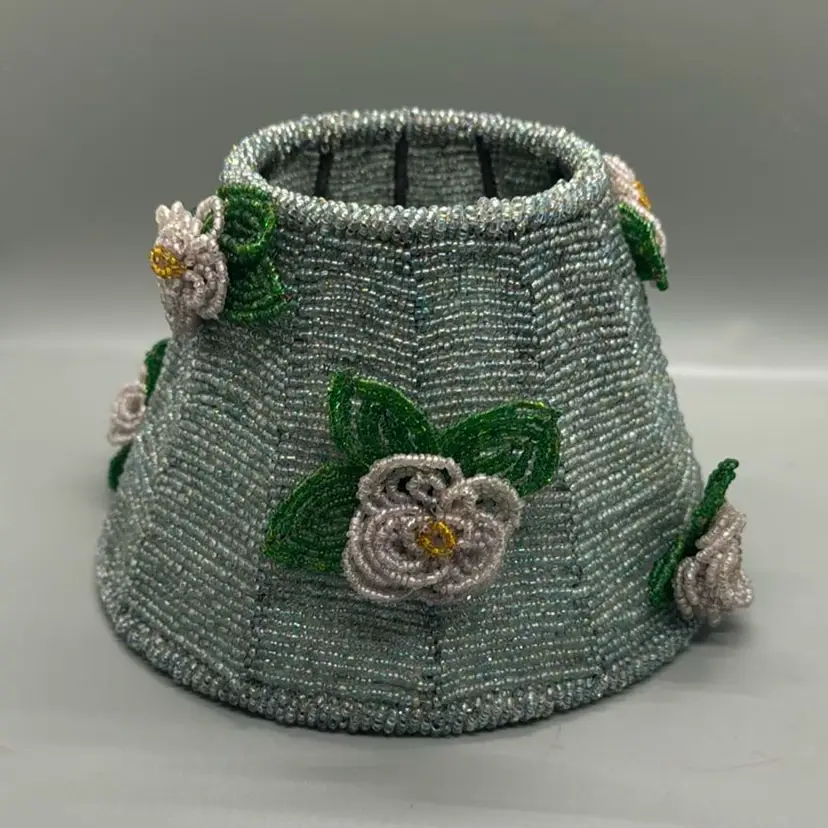 Vintage Glass Bead Lampshade Candle Topper / Floral Beaded Candle Top