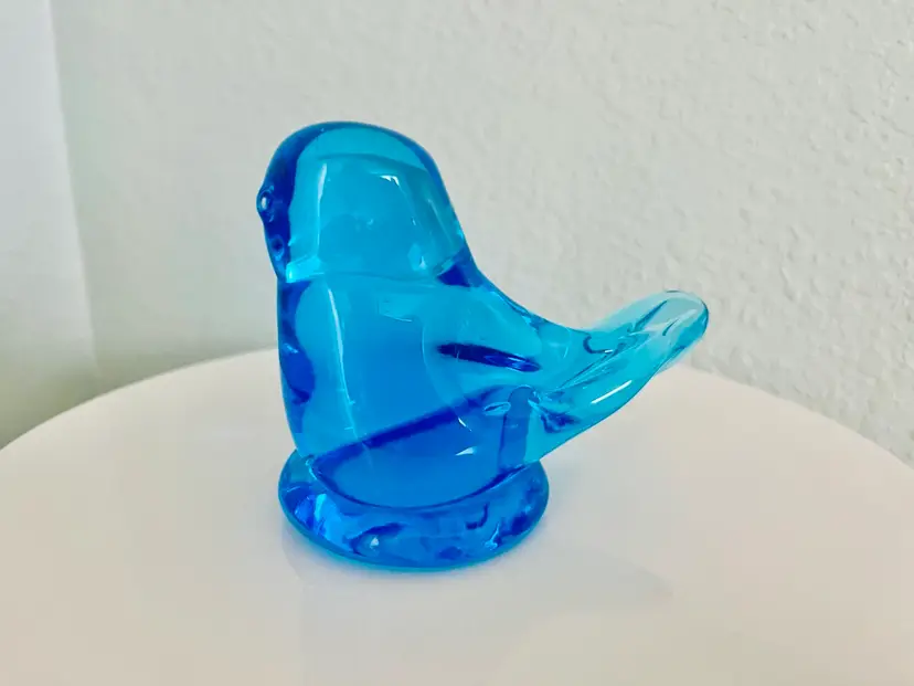 Beautiful vintage glass bluebird of happiness! Signed Leo Ward, and I believe the date is 1989, but part of the last number isn’t clear. Great condition, with no chips or cracks. Measures approx. 3.5” long and 2.75” tall.