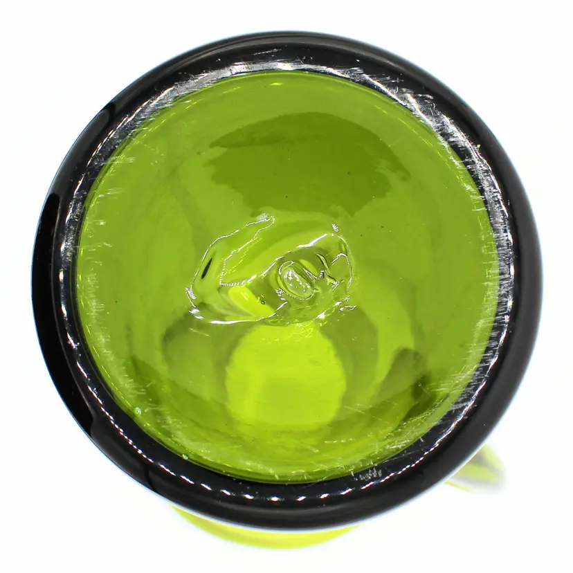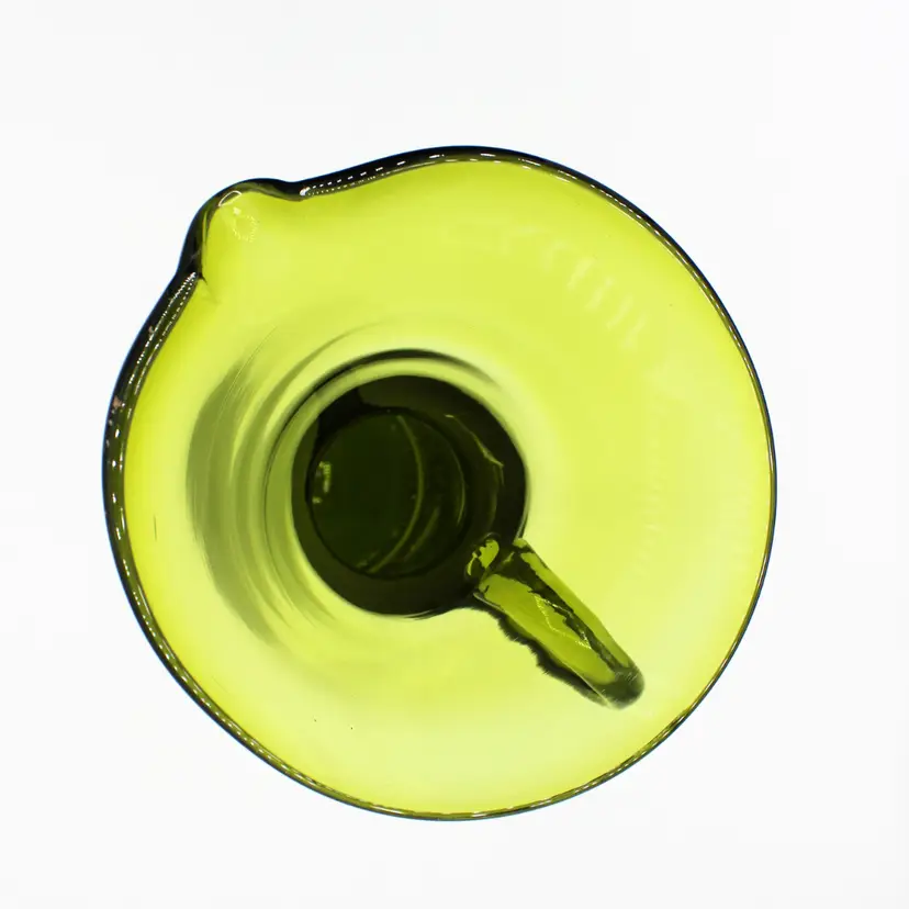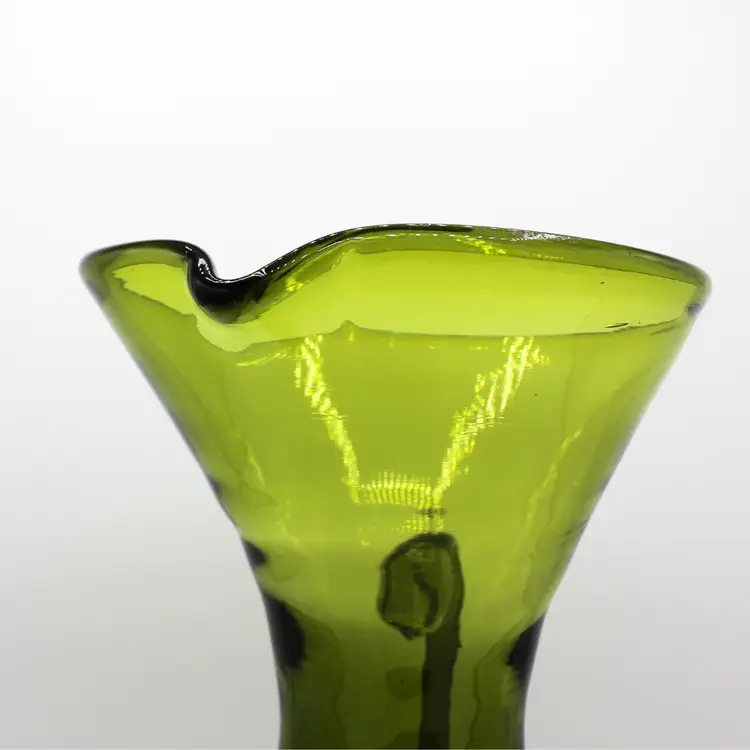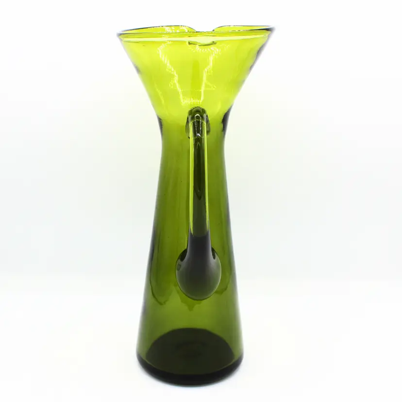 • Authentic vintage hand blown art glass • Olive green / chartreuse green • Elegant hourglass silhouette • Flared rim with subtle pouring lip • Applied darker green handle accent • Classic 1960s - 70s barware • Statement piece for bar cart décor