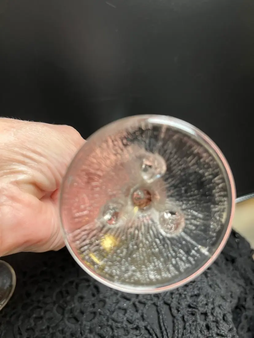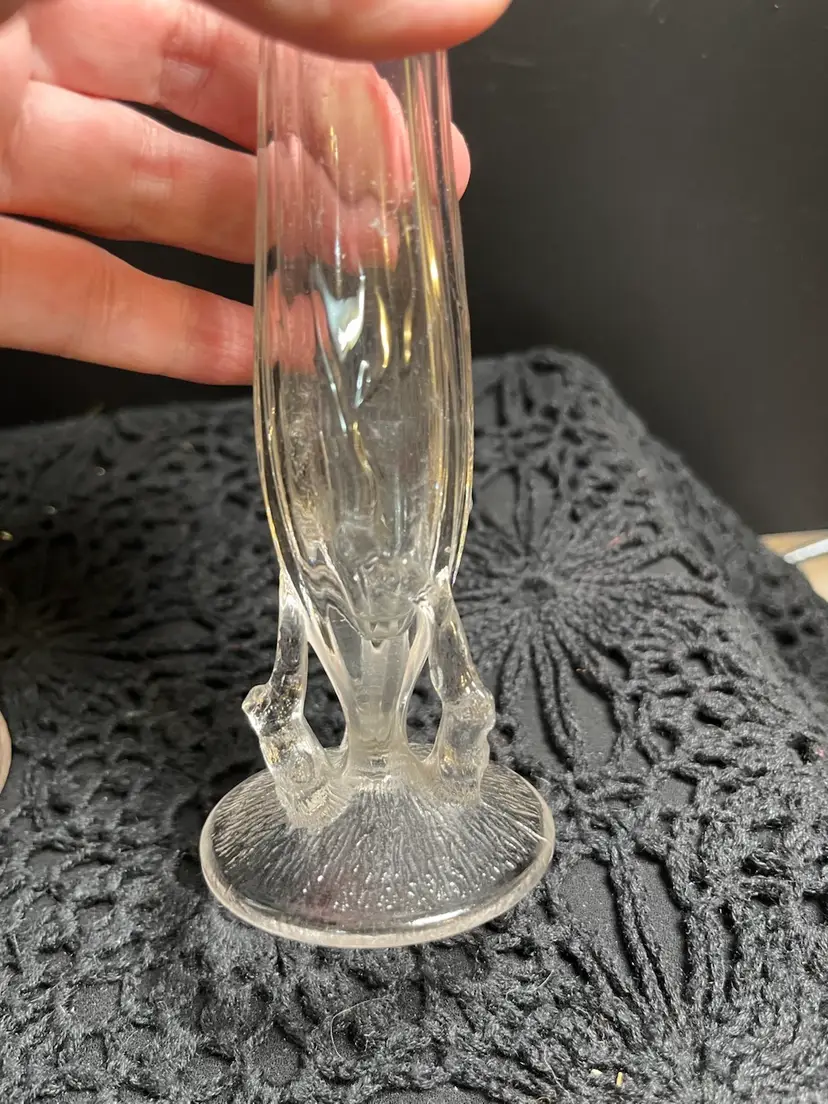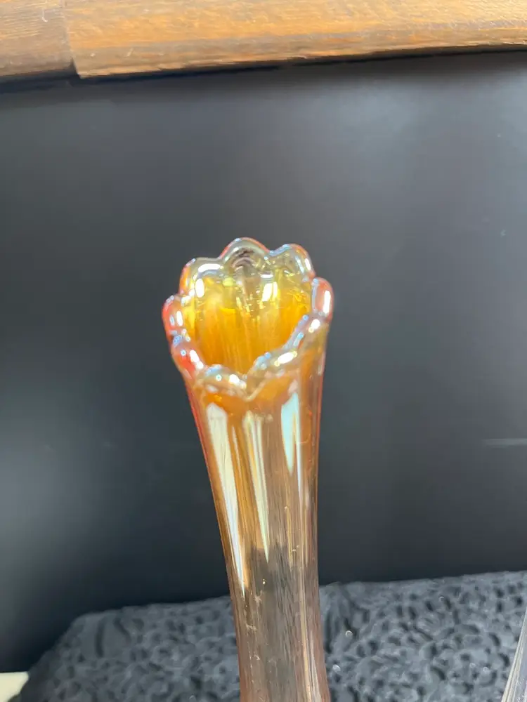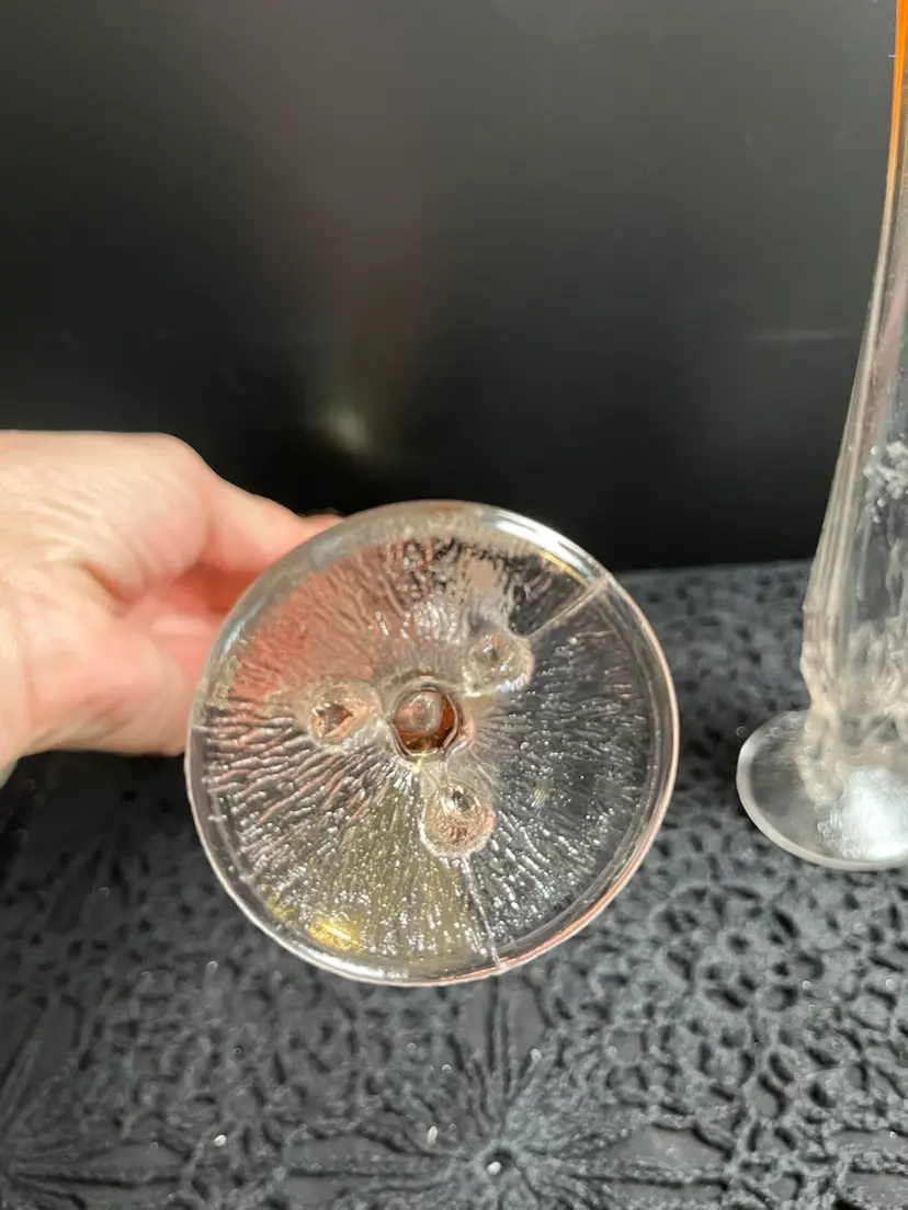 One is slightly taller than the other. Asymmetrical mouth. Very vibrant and pretty. 9.75" x 2". Approx 12.2 Oz. Lot 21
