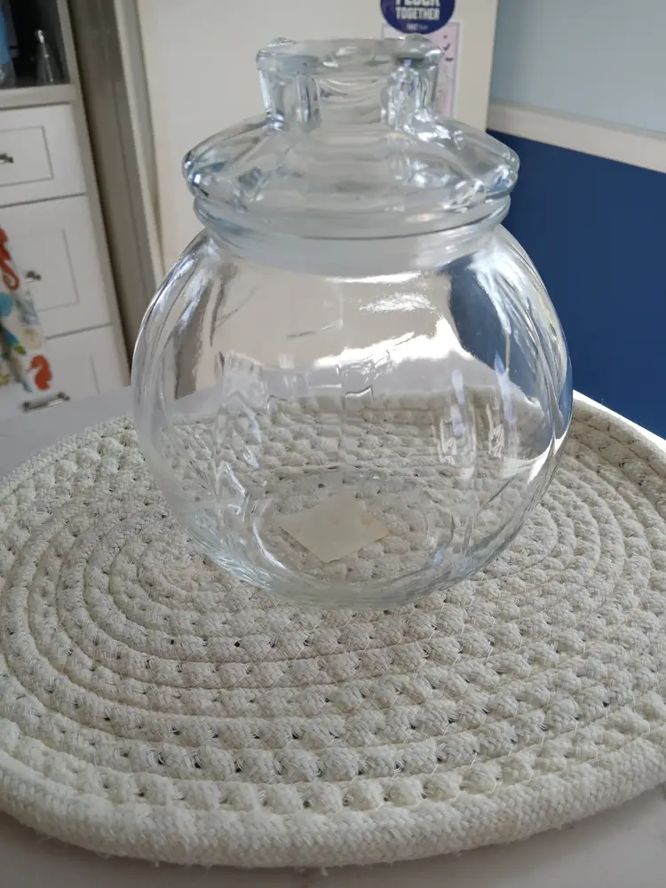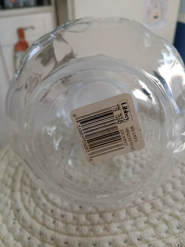 This Libbey glass container can be used for a number of ways,candy,cookies,muffins or a light inside for decoration. This glass jar is in perfect condition! No chips cracks or scratches. Original sticker on the bottom.It was made in Mexico. The lid closes very tightly.Also has a vine with leaf on the top. Height 6.5in Width. 5.6in Please check all pictures they are part of the description. Questions please contact me,thanks