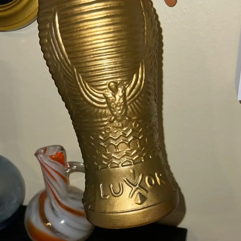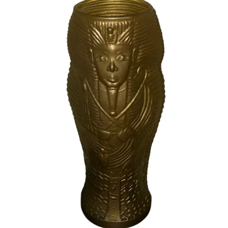 Vintage Glass Luxor Tumbler Gold King Tut Statue 9”