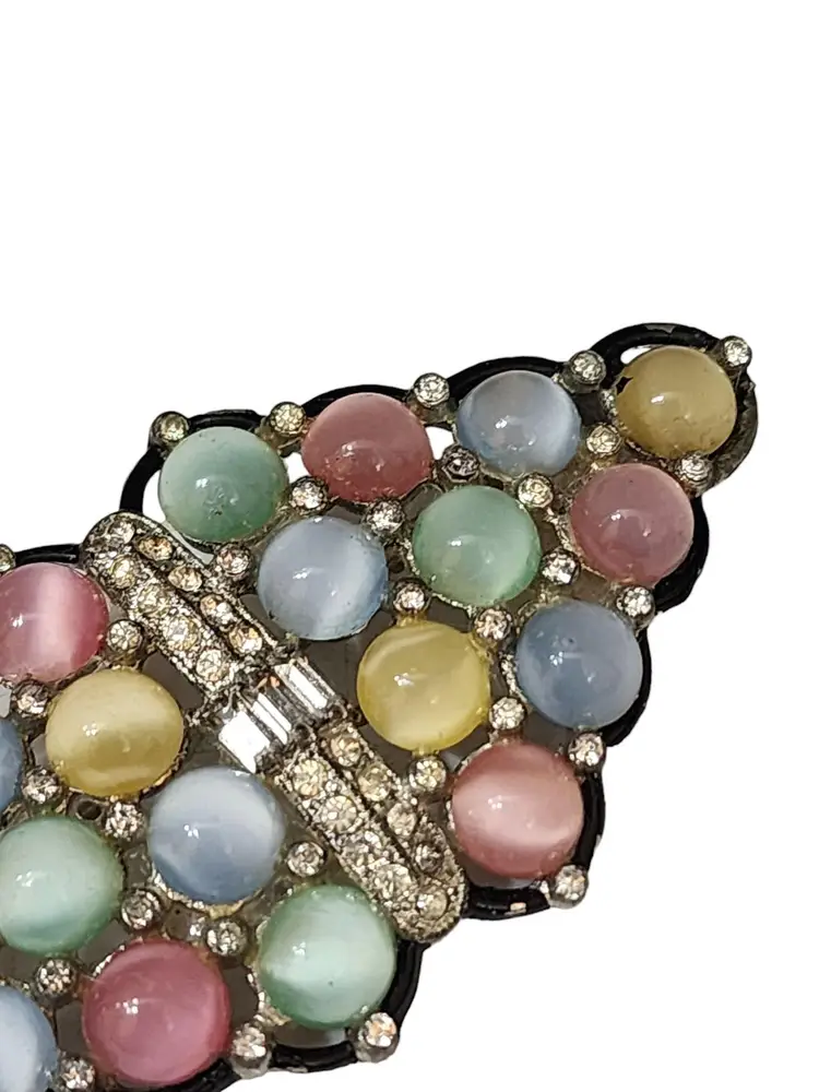 Vintage Glass Moonstone & Enamel Fruit Style Brooch (A4350)